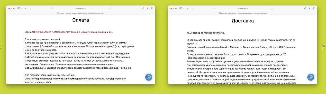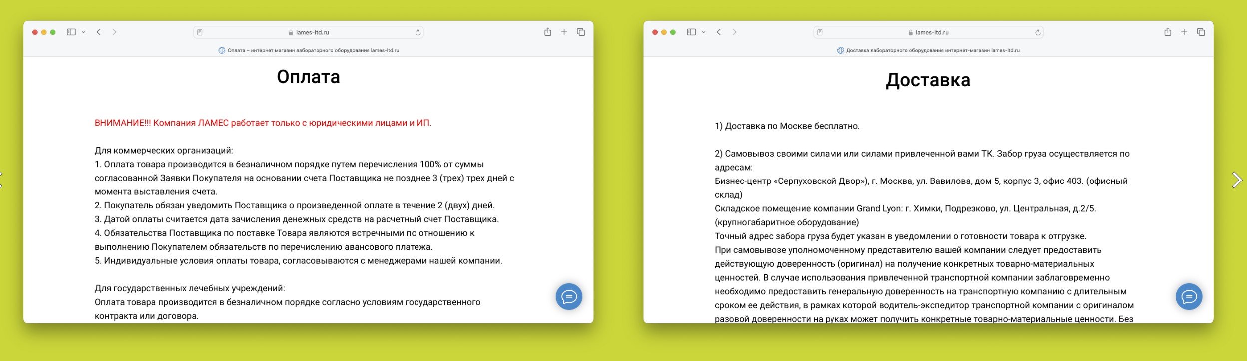 Добавили страницы с основной коммерческой информацией: например, об оплате и доставке. Пока эти разделы выглядят просто, но даже в таком виде они позволяют поисковым системам видеть, что на сайте клиента есть вся нужная информация для покупателей.