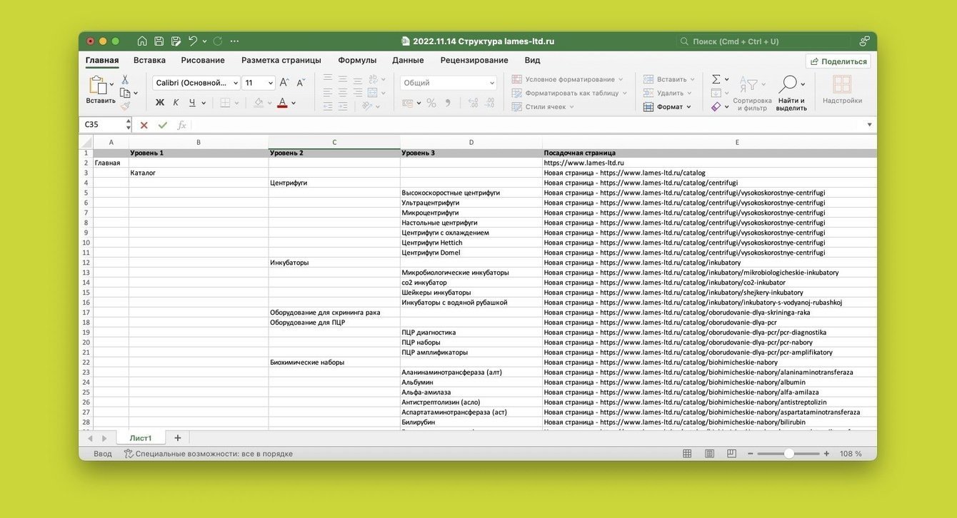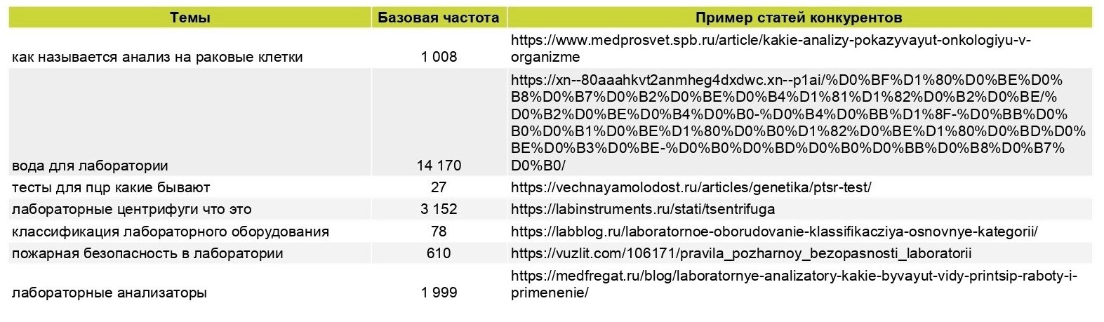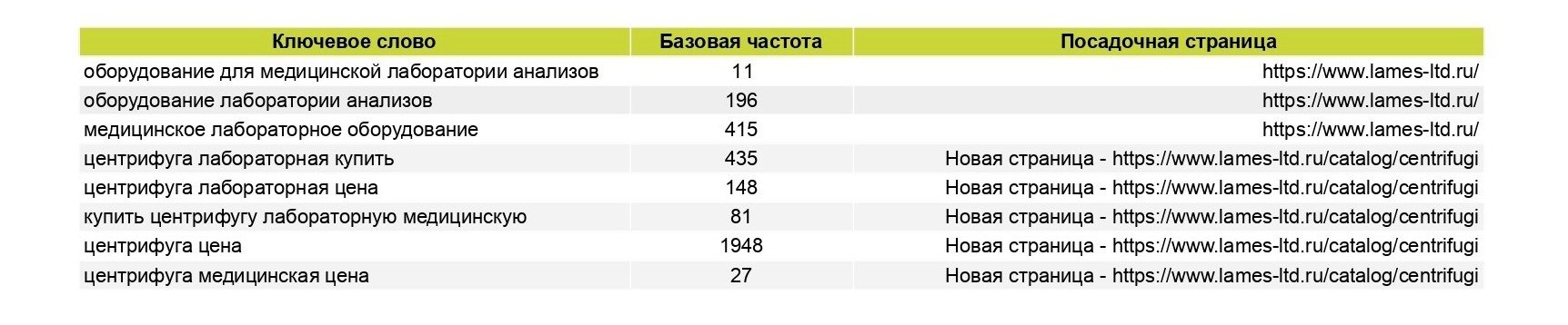 Изначально у клиента не было вообще никакой семантики, сайт был сделан без учета поисковых запросов пользователей. Мы начали эту работу с нуля и проанализировали, по какие слова и фразы потенциальные покупатели используют для поиска медтехники в Google и «Яндексе». В итоге получили более 200 запросов, по которым клиенты могут искать лабораторное оборудование.