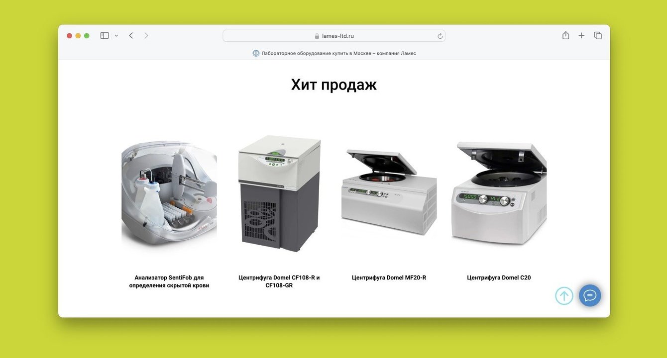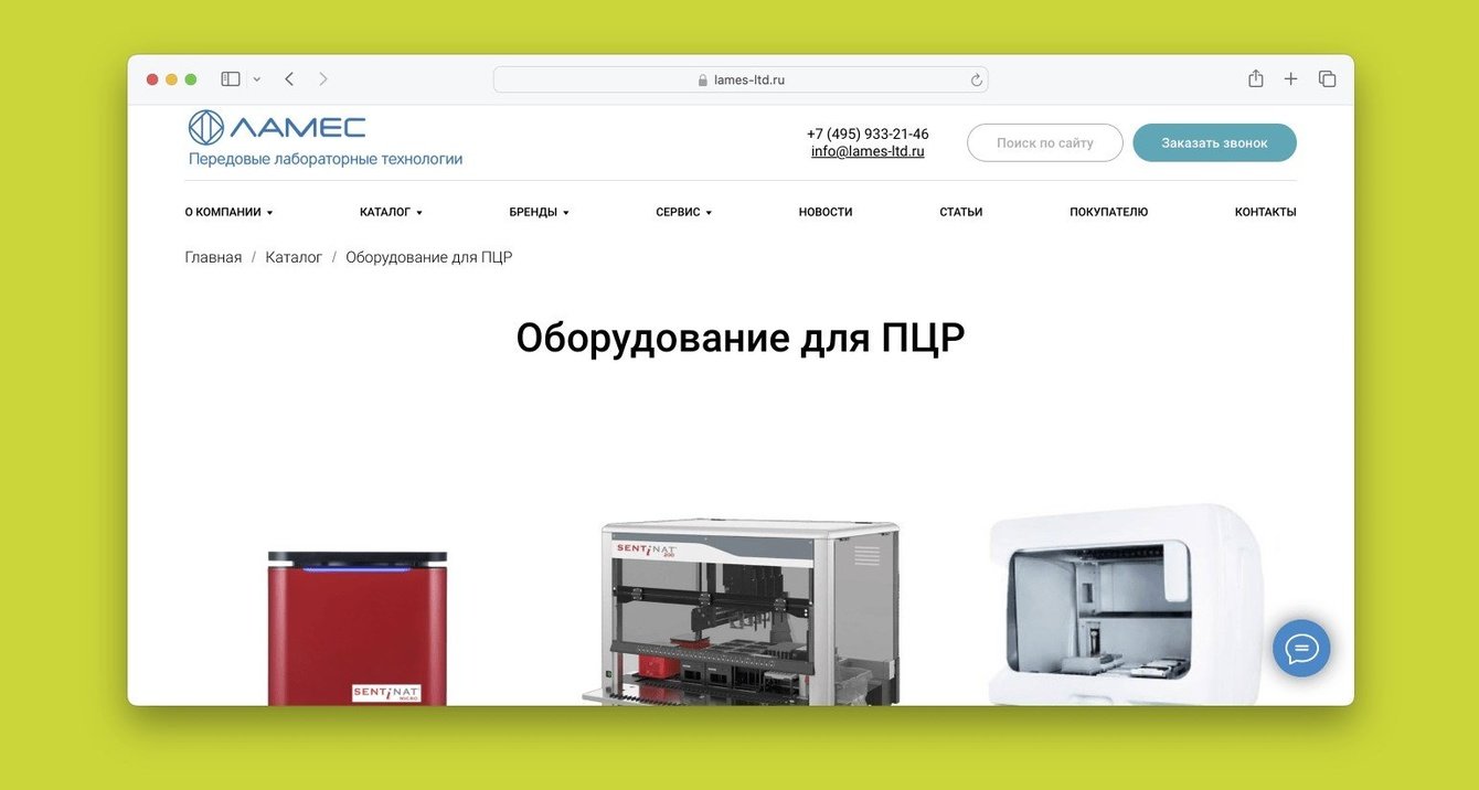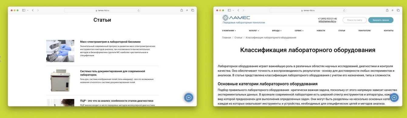 Изначально у клиента был блог, но он не работал на привлечение трафика. Мы приняли решение использовать этот раздел, чтобы продвигать так называемые информационные запросы. Это те слова и фразы, которые покупатели используют, когда хотят поближе познакомиться с какой-то темой, но еще не готовы оформить заказ. Например, запрос «пожарная безопасность в лаборатории» — информационный. Человек, который использует его, явно не хочет сейчас что-то покупать, но, вероятно, работает в лаборатории. Значит, если он попадет на сайт «Ламес», то может заинтересоваться покупкой оборудования.