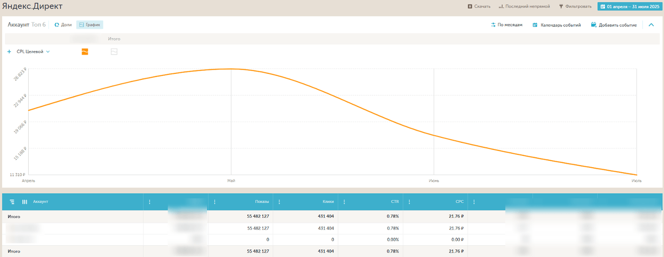 — достигли минимального среднемесячного CPL в 10 870 ₽ (июль 2025);