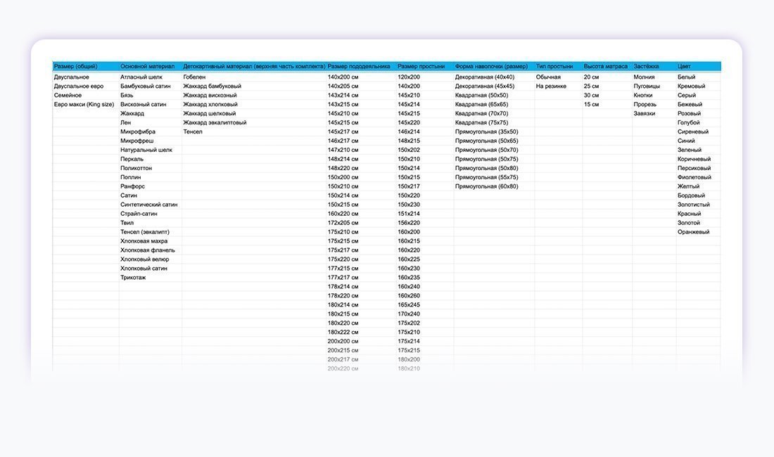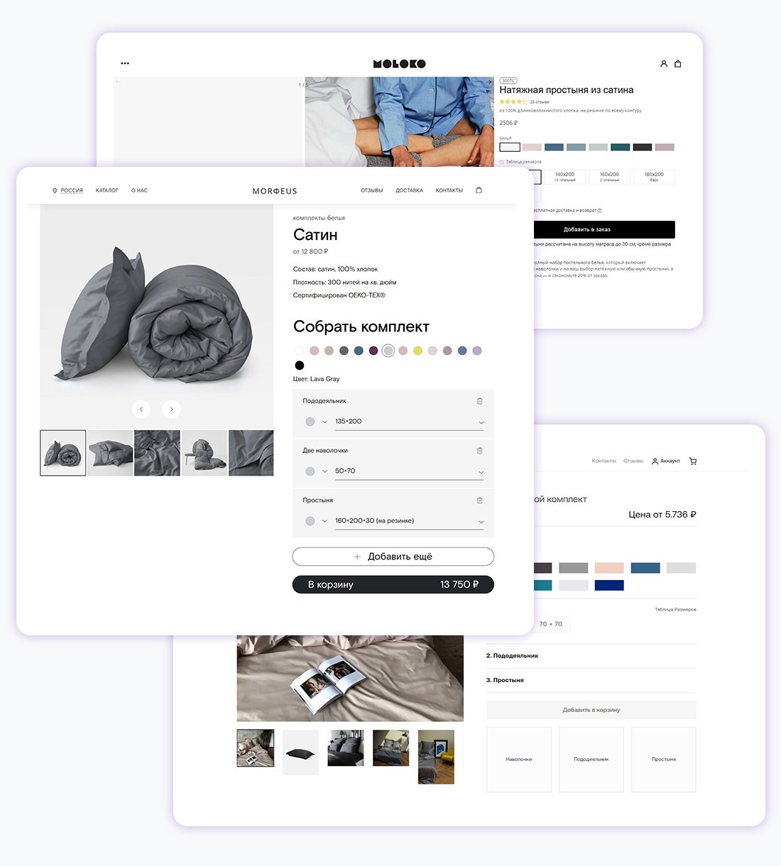 В проектировании основное внимание уделили каталогу и подборщику комплектов белья. Конкуренты задали высокую планку в разработке такого конфигуратора. При этом, в сравнении с конкурентами, каталог у «М-постель» был задуман значительно сложнее и обширнее.