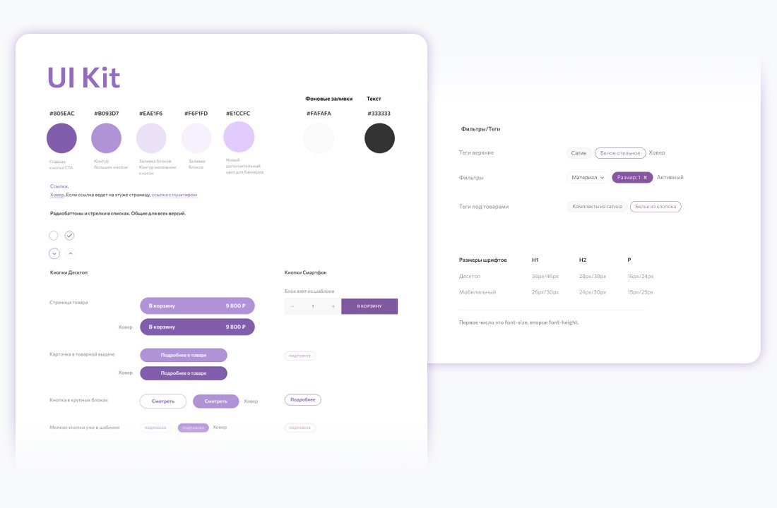 Перед версткой сайта проработали UI kit — набор готовых решений пользовательского интерфейса. Это сильно упростило работу верстальщику при создании компонентов. Также это помогло при дальнейшей поддержке сайта.