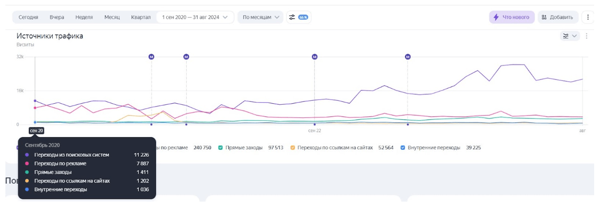 В марте 2024 перенесли сайт на Tilda по решению клиента. Правильная реализация переезда позволила избежать просадки трафика и позиций.