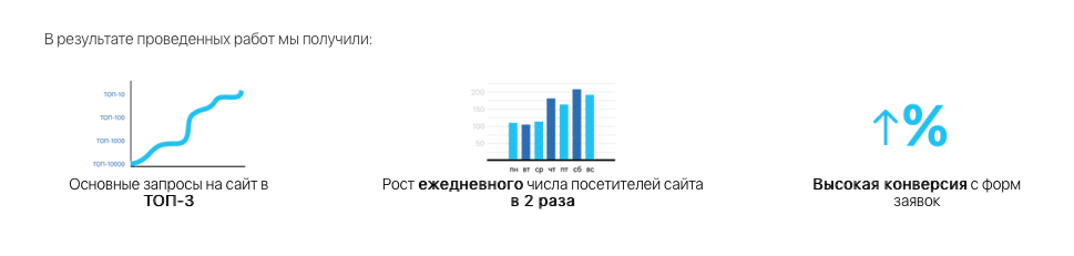 — Проведена внутренняя оптимизация по всем этапам работ: сбор семантического ядра, кластеризация ключевых слов на группы и присвоение продвигаемых страниц