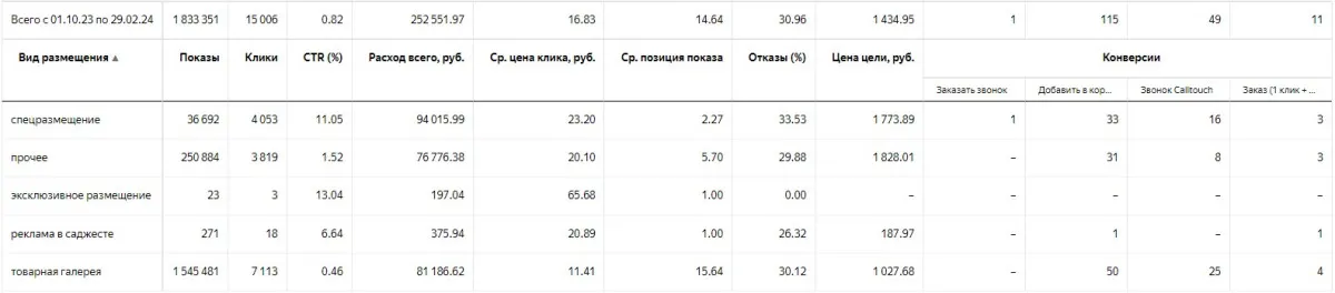 Проанализировав товарную кампанию, обнаружили, что лиды идут как из спецразмещения, так и с Товарной галереи: