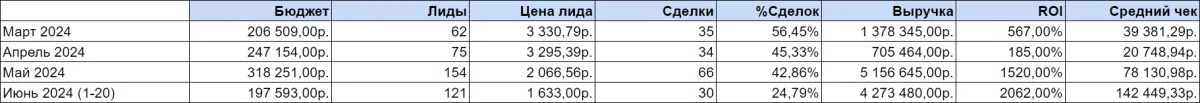 Результаты после экстренного изменения стратегии с увеличением количества лидов, ростом выручки и RОl.