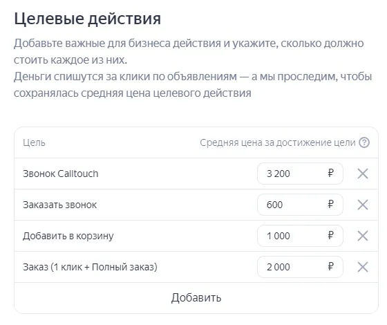 - Пришли к выводу, что оптимизация по автоцелям неэффективна. Автоцель – это просто клик на форму заявки, номер телефона, корзину, но не заявка, которая действительно ценна и может принести деньги компании, если её конвертировать в продажу. Лучше ставить цели «Звонок», «Заявка», оптимизация по которым позволит принести больше лидов: