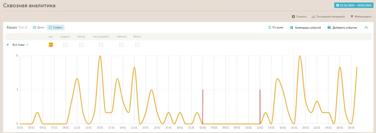 На четвертый месяц работы над проектом показатели по лидам упали до нуля