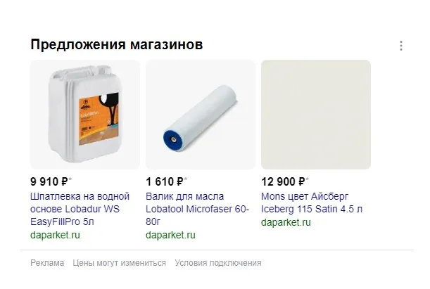 Поэтому помимо Товарной РК, мы запустили кампанию Товарная галерея - Поиск - Мск.