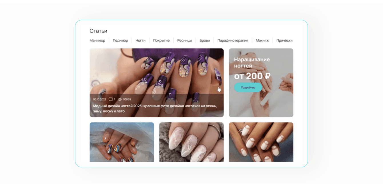 Создали бренд-медиа для присутствия в выдаче поисковых инфо-запросов. Рассказали пользователям полезные фишки и лайфхаки beauty-сферы, детально знакомили с услугами, готовили их к посещению салона, напоминали о себе.