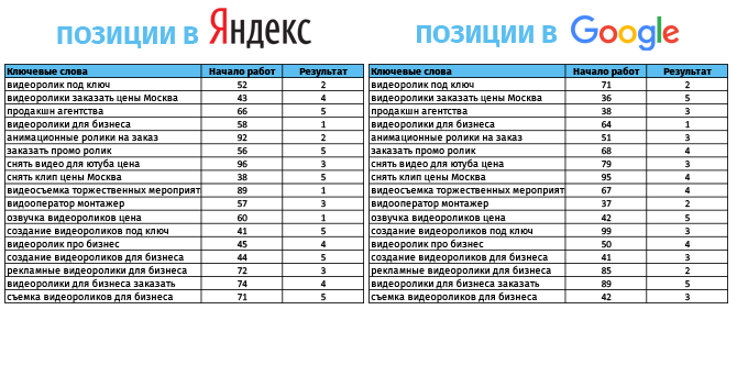 — Специалисты команды после анализа сайта распределили ключевые слова под каждую услугу видеопродакшена