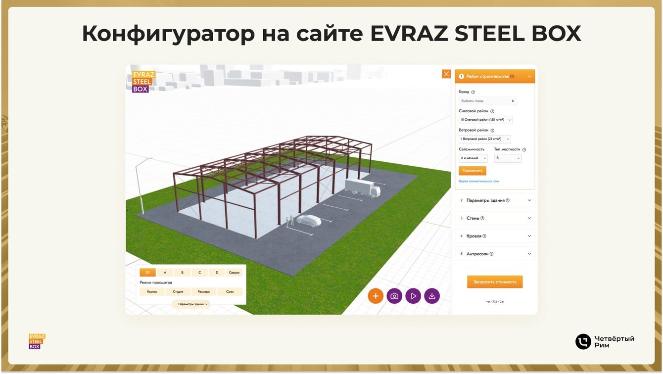Конфигуратор на сайте EVRAZ STEEL BOX.