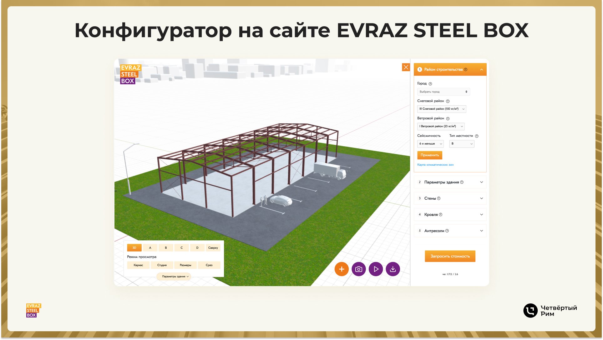 Конфигуратор на сайте EVRAZ STEEL BOX.