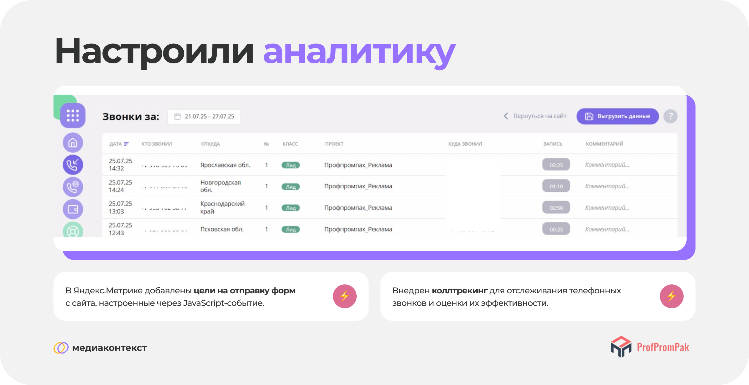 Первым делом провели аудит рекламных кампаний, а затем приступили к настройке аналитики.
