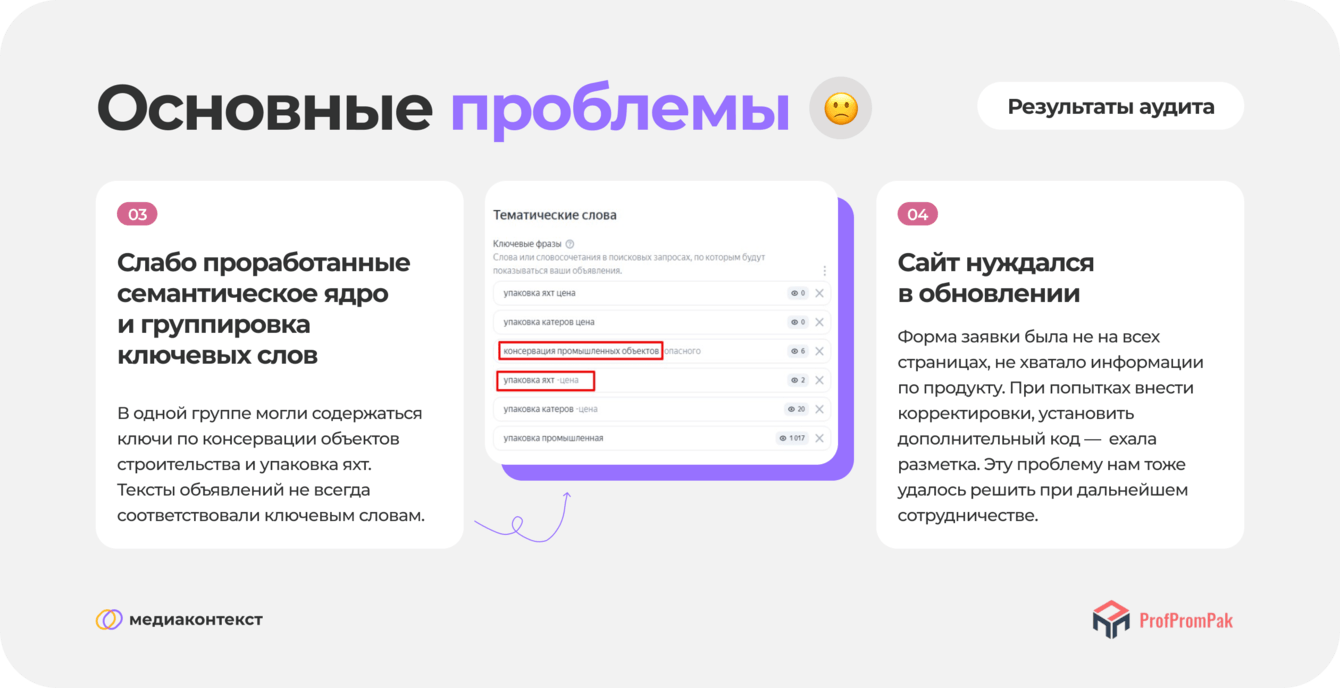 Нам предстоял полный пересбор всех кампаний и семантического ядра.