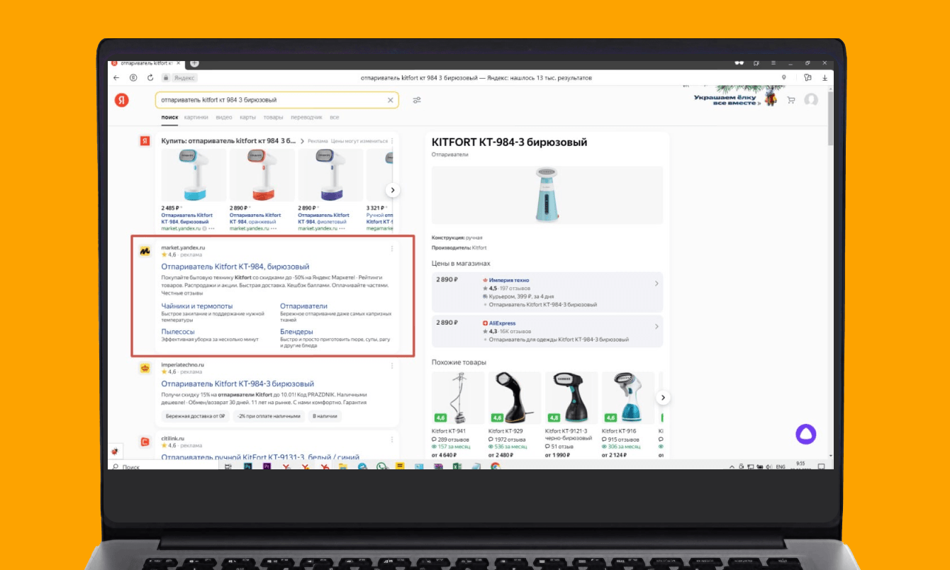 Рекламное объявление магазина Kitfort в поиске