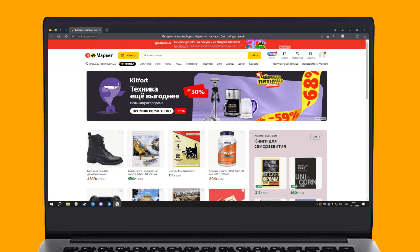 Баннер Kitfort на главной странице “Яндекс.Маркета”