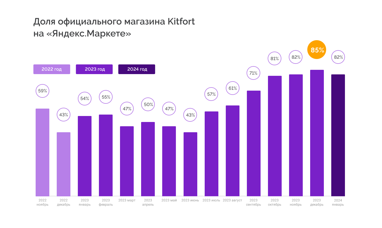 В ноябре 2022 года мы начали работать с популярным брендом бытовой техники Kitfort. Наше агентство является технологическим партнёром “Яндекс.Маркета”, вместе с командой маркетплейса за год нам удалось увеличить продажи Kitfort в 5 раз. В этом кейсе мы расскажем об инструментах продвижения, которыми мы пользовались.