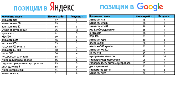 - Продвижение запросов в ТОП-10 поисковых систем Yandex и Google