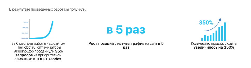 - Продвижение в поисковых системах Yandex и Google основных ключевых слов в ТОП-1