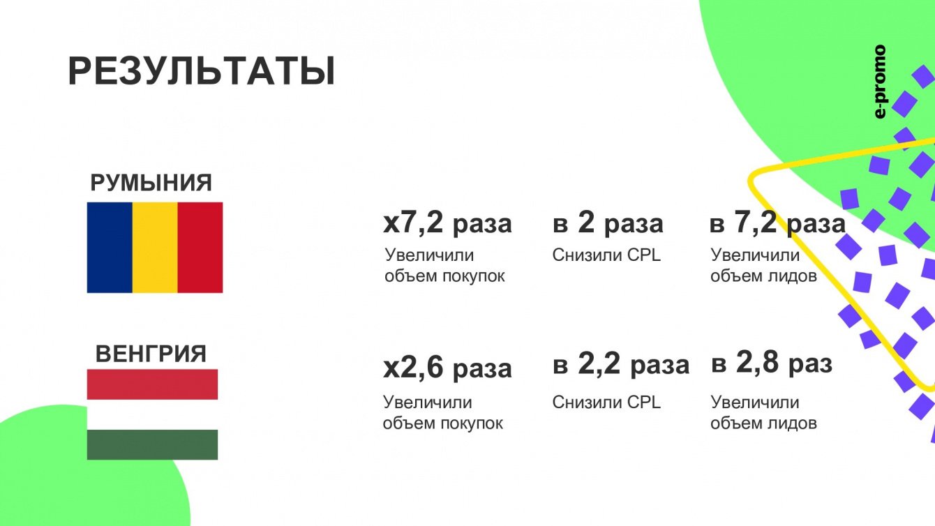 KPI в Румынии: увеличение лидов и объема покупок в 7,2 раза.