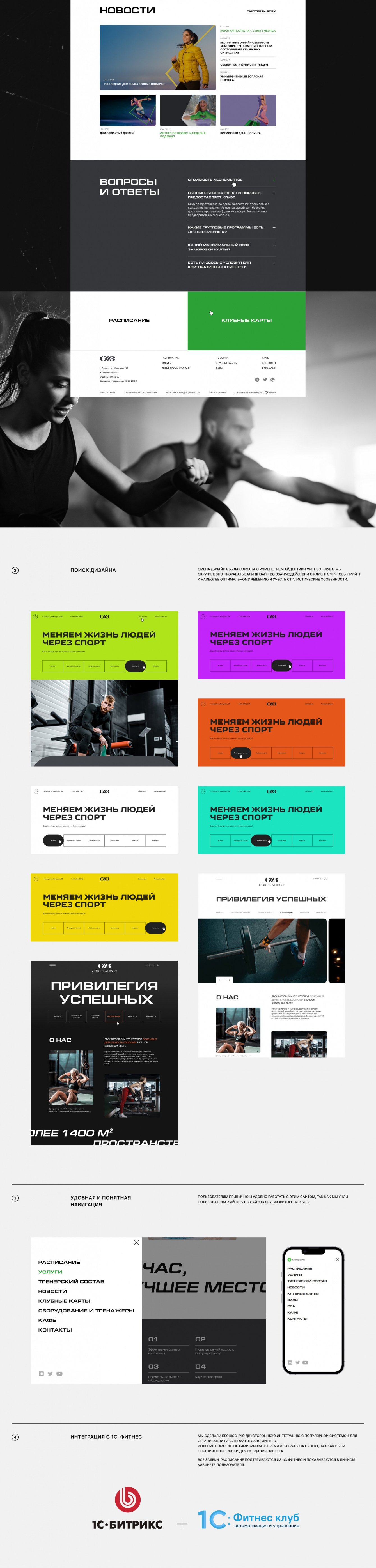 Мы всегда были в тесном взаимодействии с клиентом: продумывали решения, устраивали брейнштормы. Вместе добились совпадения айдентики фитнес-клуба и дизайна сайта.