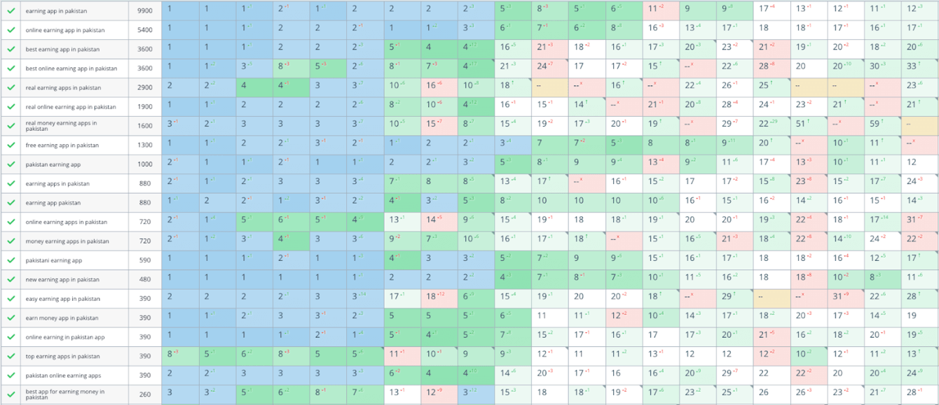 Основные ключевые запросы, такие как "earning app in Pakistan", поднялись с позиций за пределами топ-10 на 1-3 места.