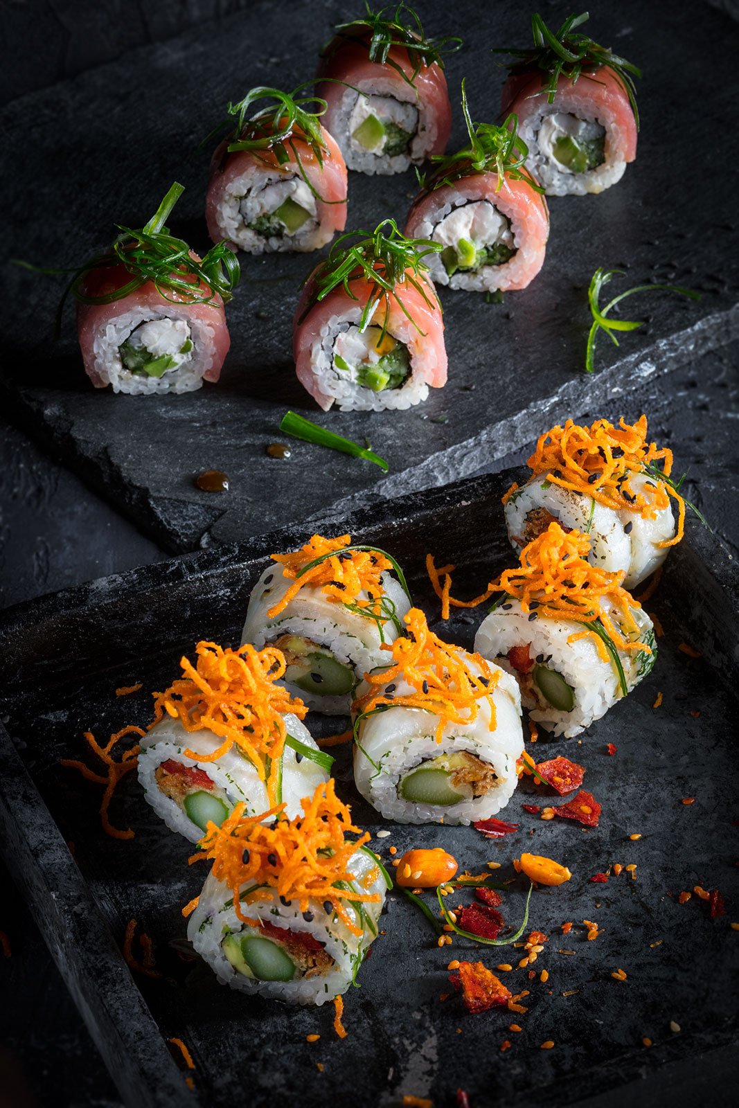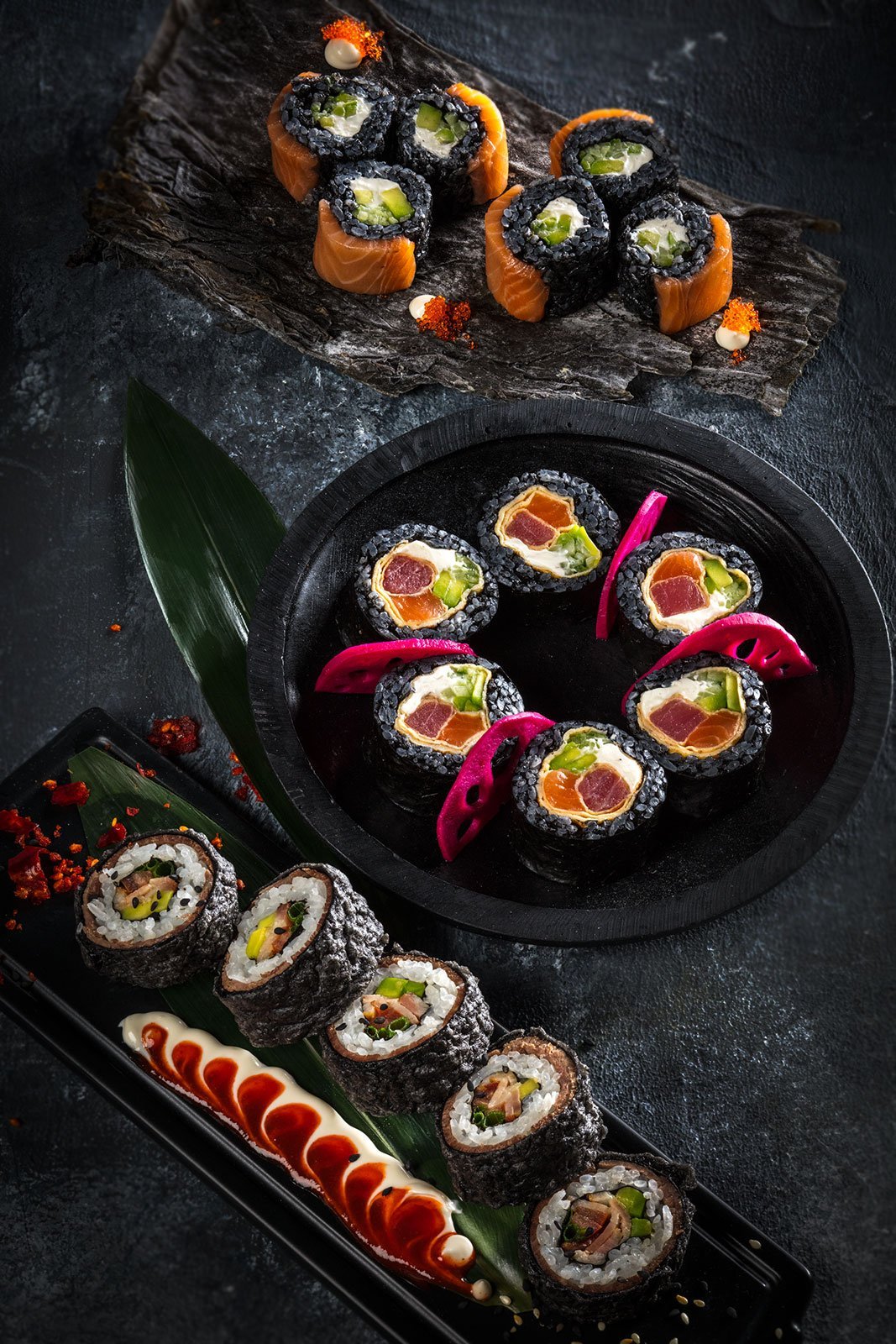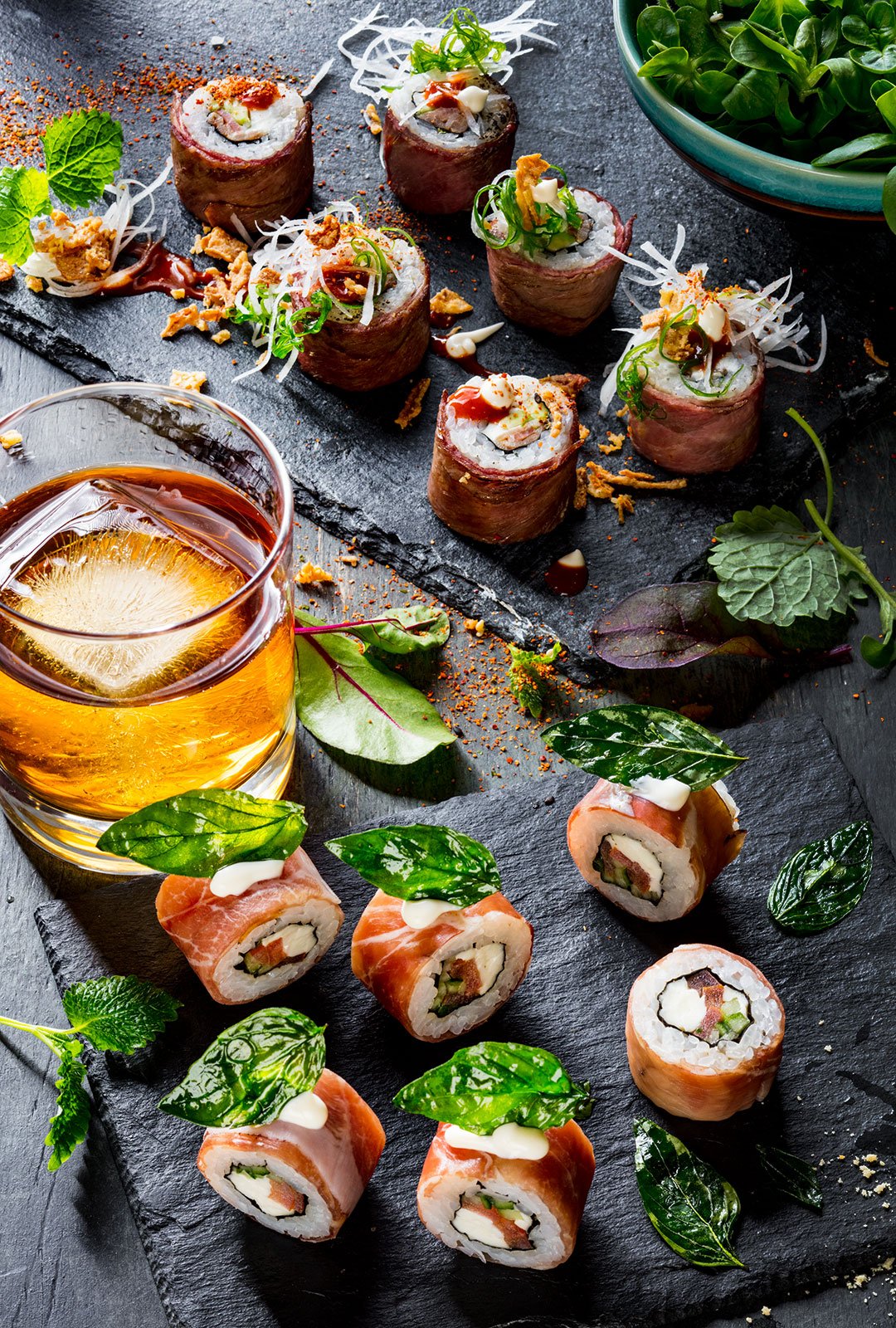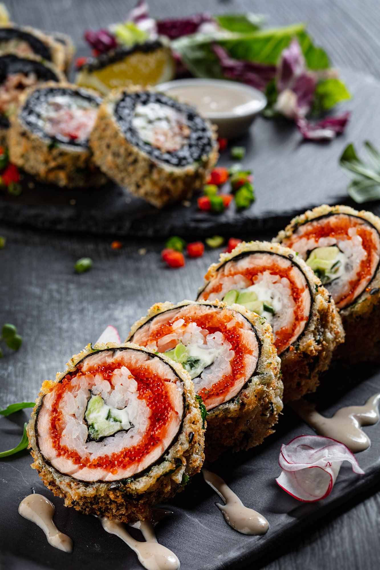 Это была масштабная фотосъемка блюд и напитков. Тщательное планирование, проработка концепции и стилистики фотосъемки, поиск, изготовление и выбор подходящего реквизита, фона для каждого блюда ускорило процесс фотосъемки. Во время фотосъемки была разработана подача блюд и напитков. Интересный проект в японской тематике длился несколько дней в кофейни, в котором участвовали су-шефы, шеф-повар, бармен, бариста, менеджеры по рекламе.