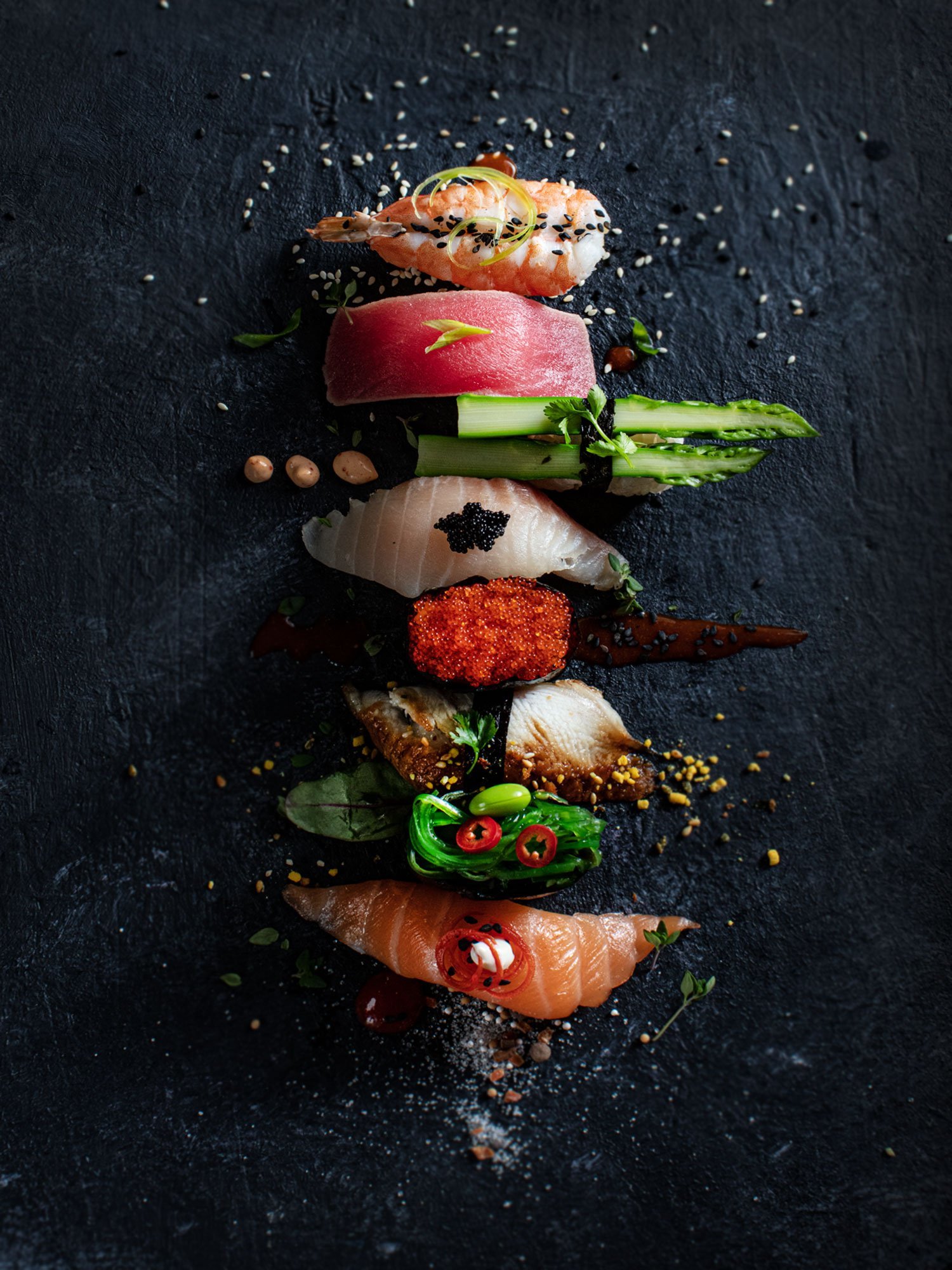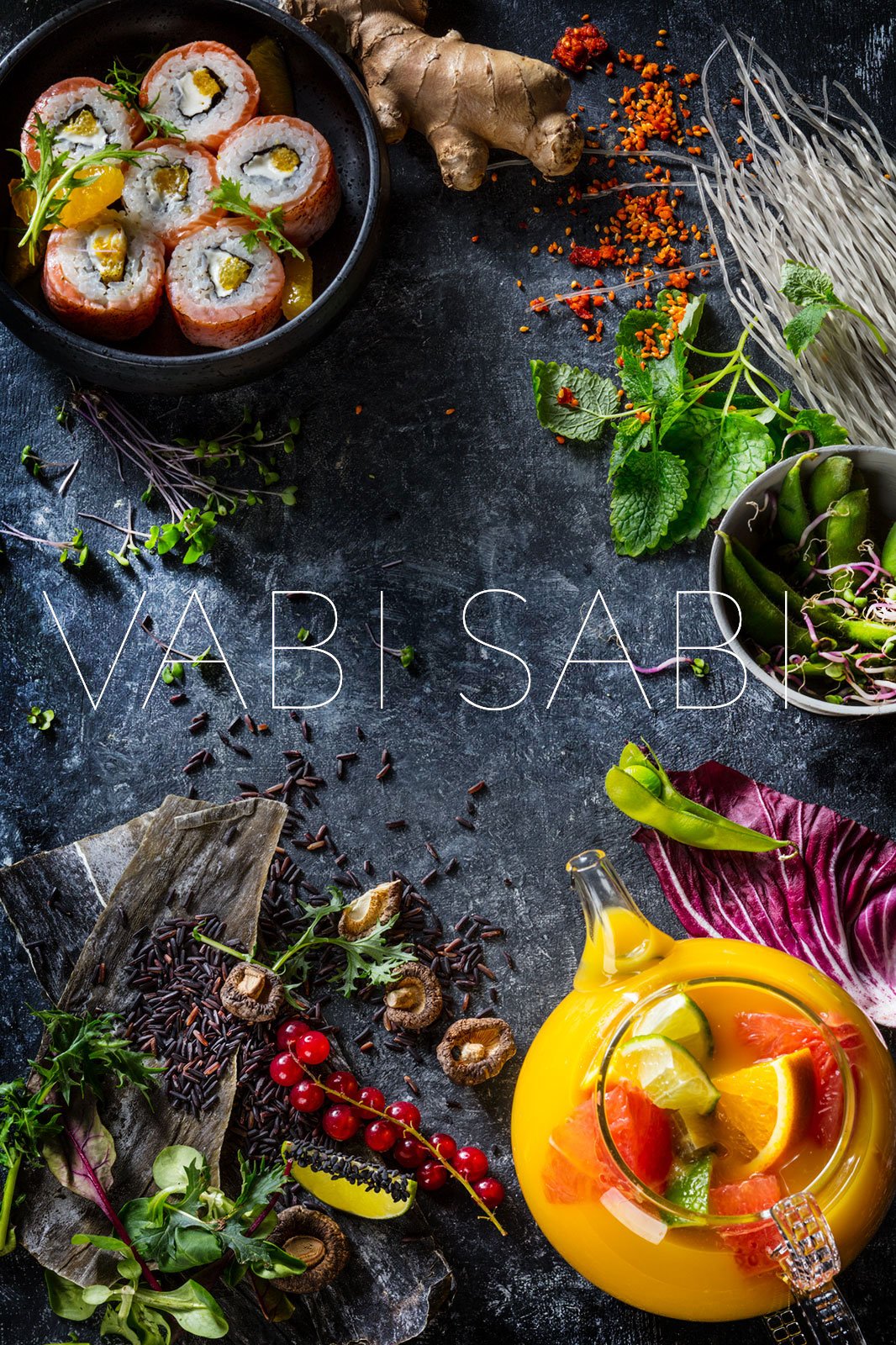 Для сети кафеин японской кухни "ВАБИ САБИ" была задача провести фотосъемку блюд и напитков для меню. А так же проработать концепцию и стилистику фотосъемки, подобрать реквизит и фоны.