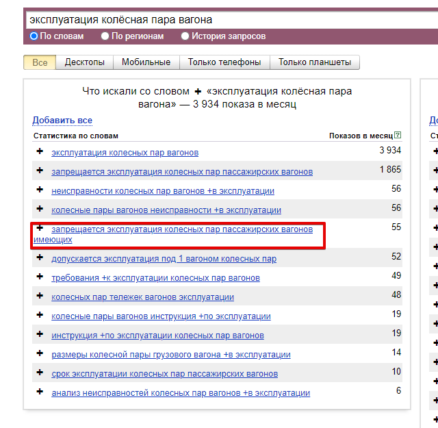 Так при создании текстов пришлось отойти от стандартных SEO-требований. Наши редакторы вместе с техническими экспертами Вагонмастера писали качественные тексты, в которых был превышен процент спамности, до 60%. Это нормально, ведь в информации о ремонте вагонов много терминологии. Да и у конкурентов по выдаче такие же превышения.