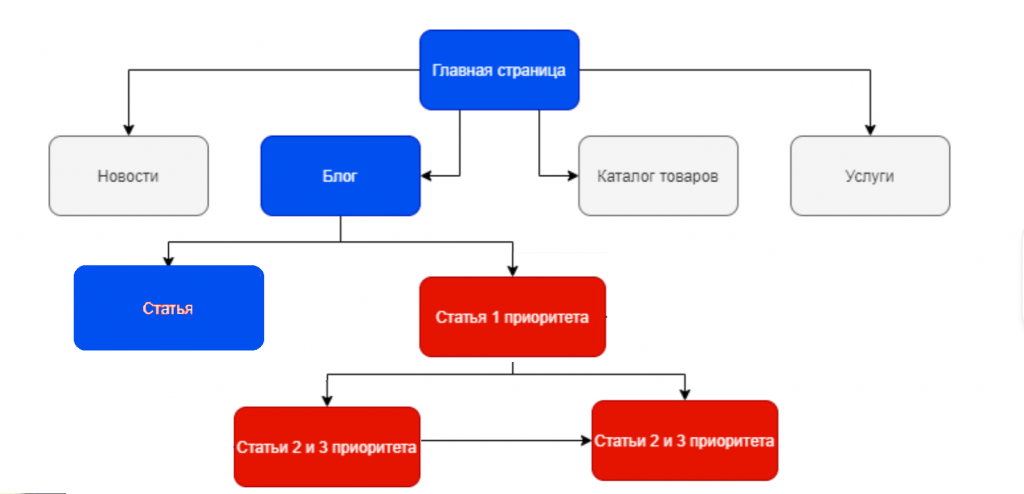 В итоге получили такую структуру сайта, которая соответствует логике с точки зрения тем в семантике и сохраняет удобство перелинковки: