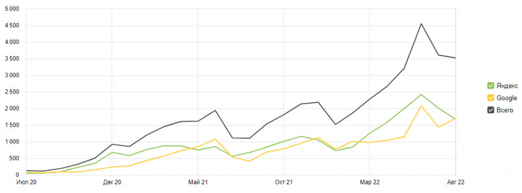 Привлечение платного трафика было полезно для SEO: на сайт приходили люди и что-то там делали — накапливались поведенческие факторы. Начал появляться первый спрос на бренд, и вместе всё это положительно влияло на позиции в органике.