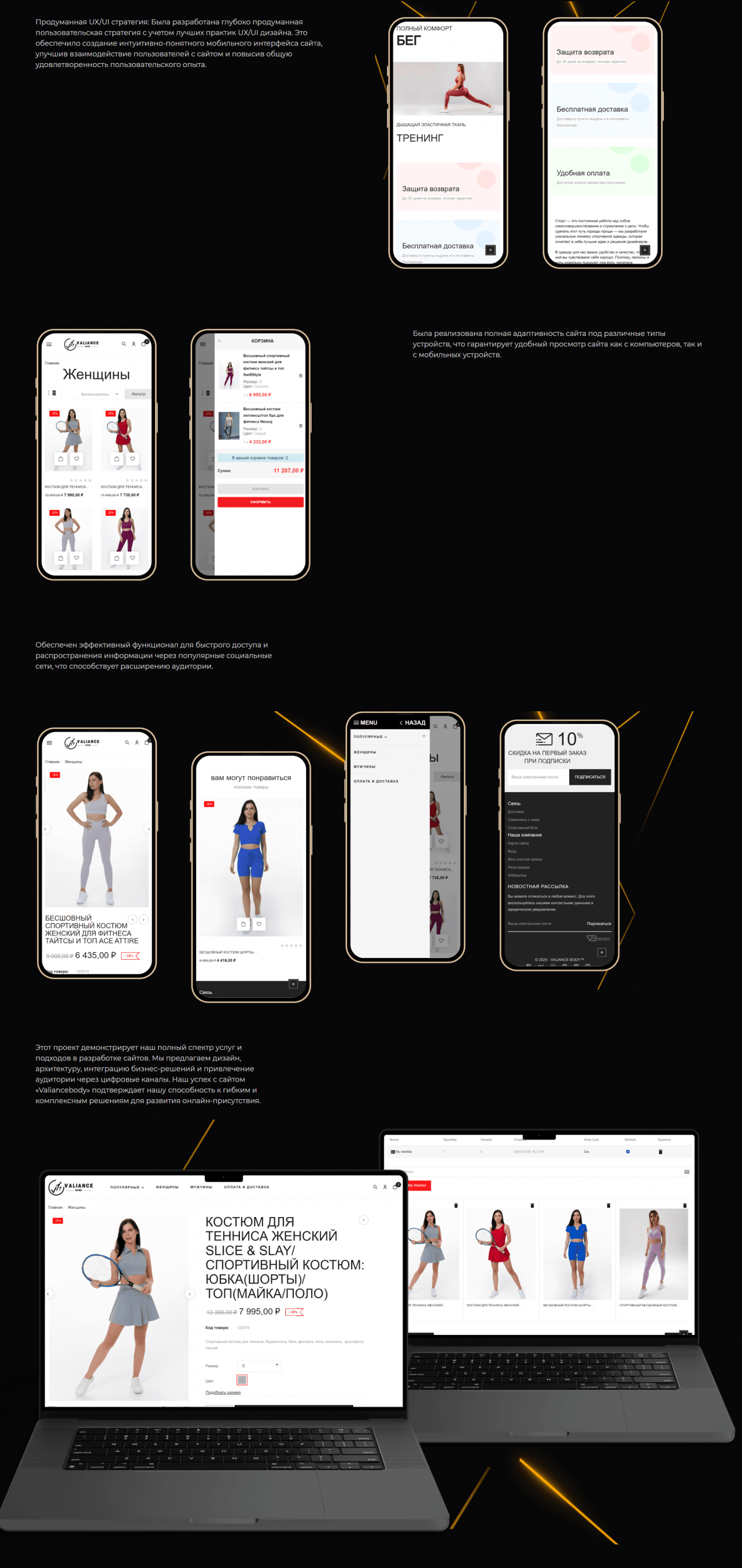 Результатом нашей работы стал удобный и интуитивно понятный веб-сайт, оптимизированный для мобильных устройств и имеющий высокую скорость загрузки. Благодаря системе скидок и интеграции социальных сетей, он не только обеспечивает прекрасный пользовательский опыт, но и стимулирует к совершению покупок, что способствует увеличению клиентской лояльности.