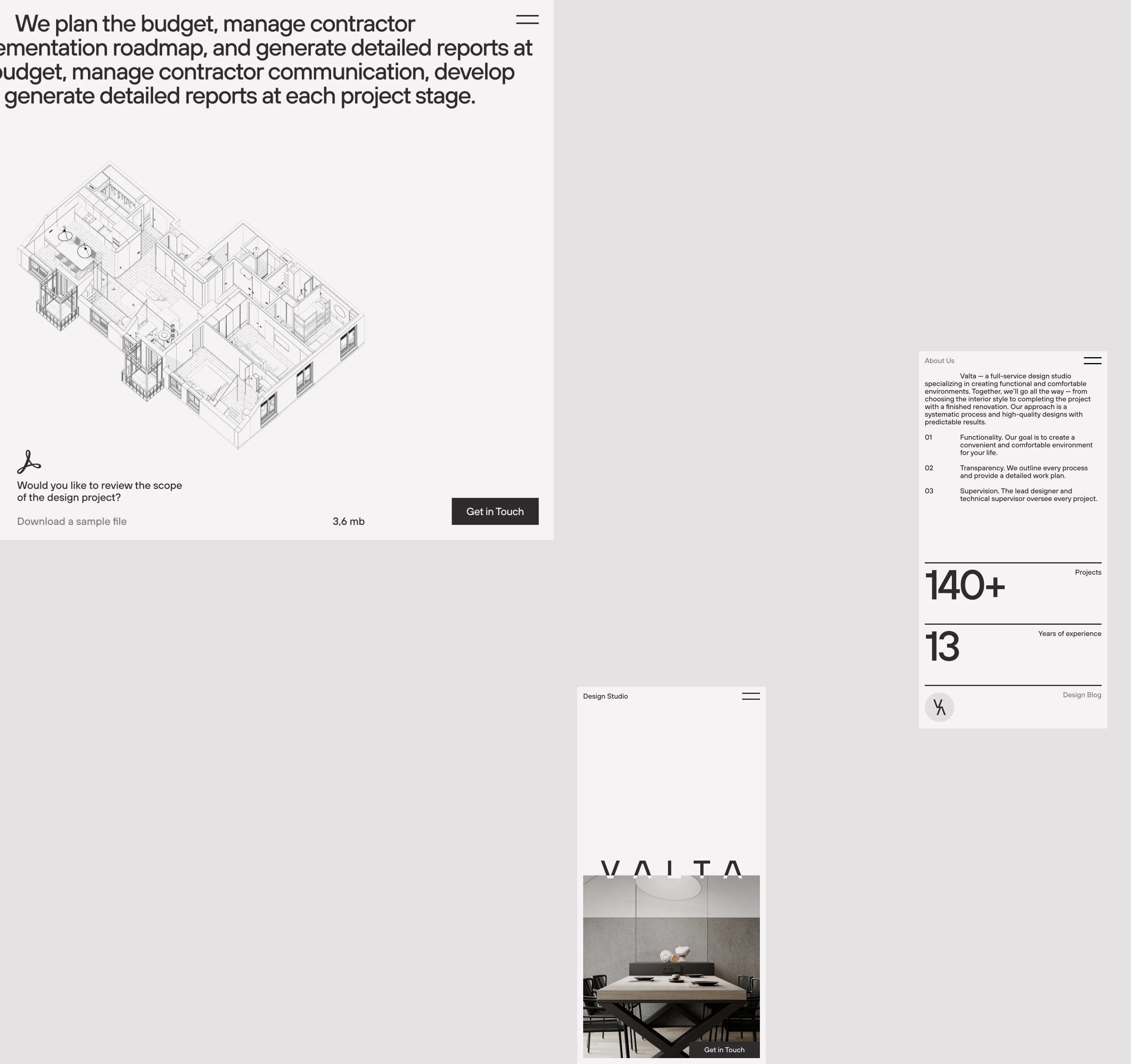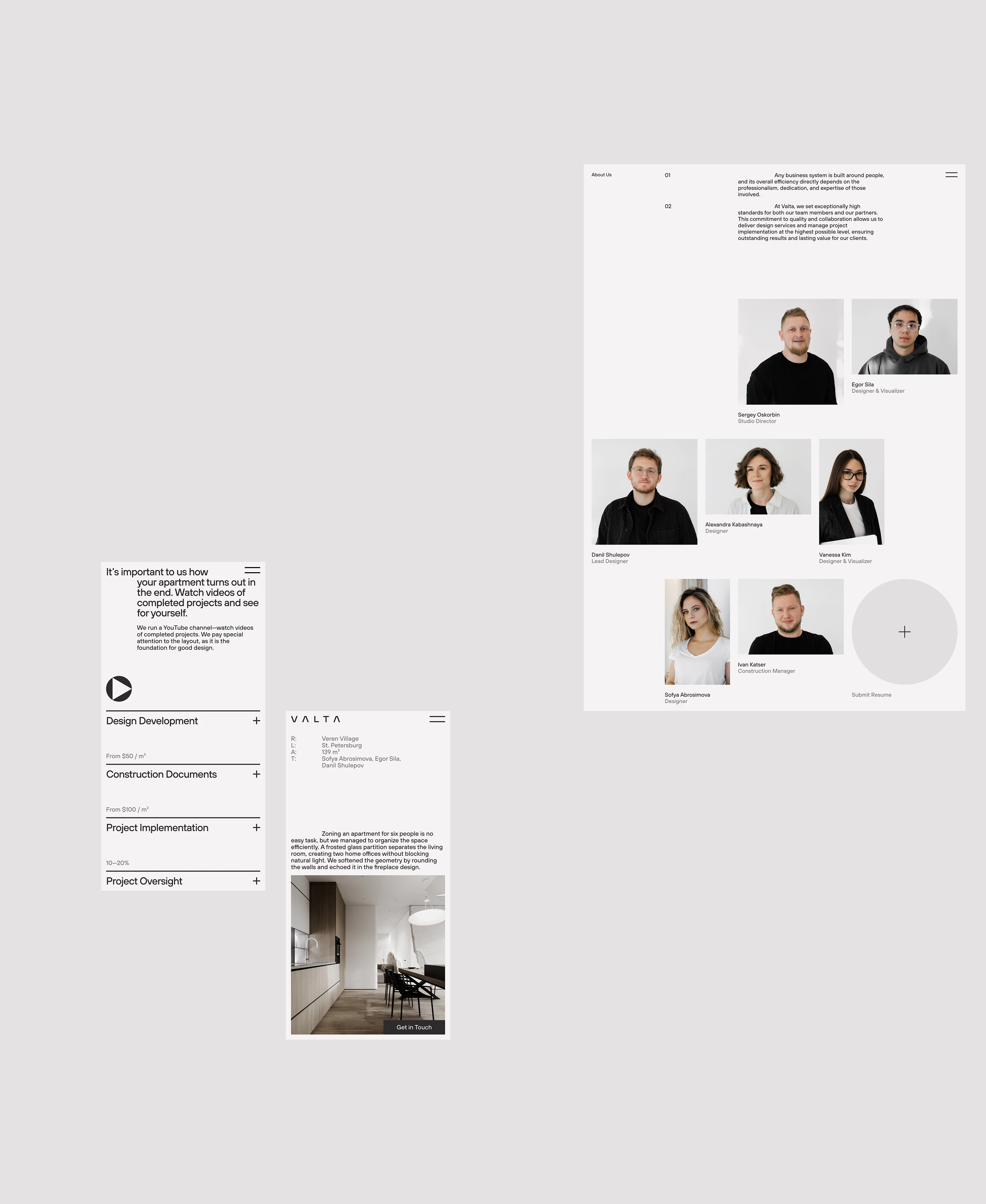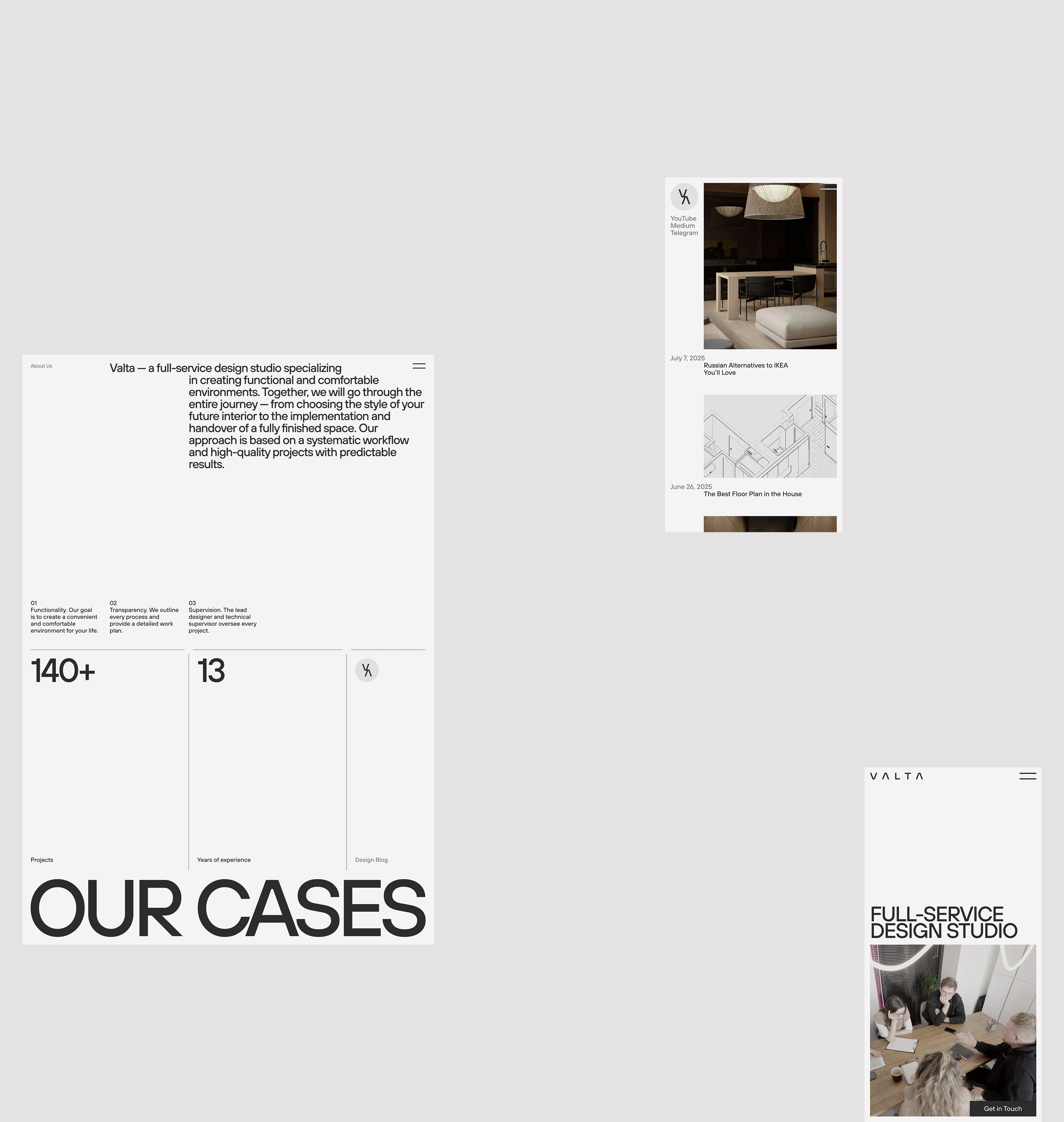 Для сайта мы спроектировали не только визуальный облик, но и структуру, сосредоточив внимание на интуитивно понятном пользовательском опыте. Мы тщательно проработали путь пользователя, выделив ключевые услуги и экспертные направления компании, обеспечив при этом плавное и логичное восприятие информации.