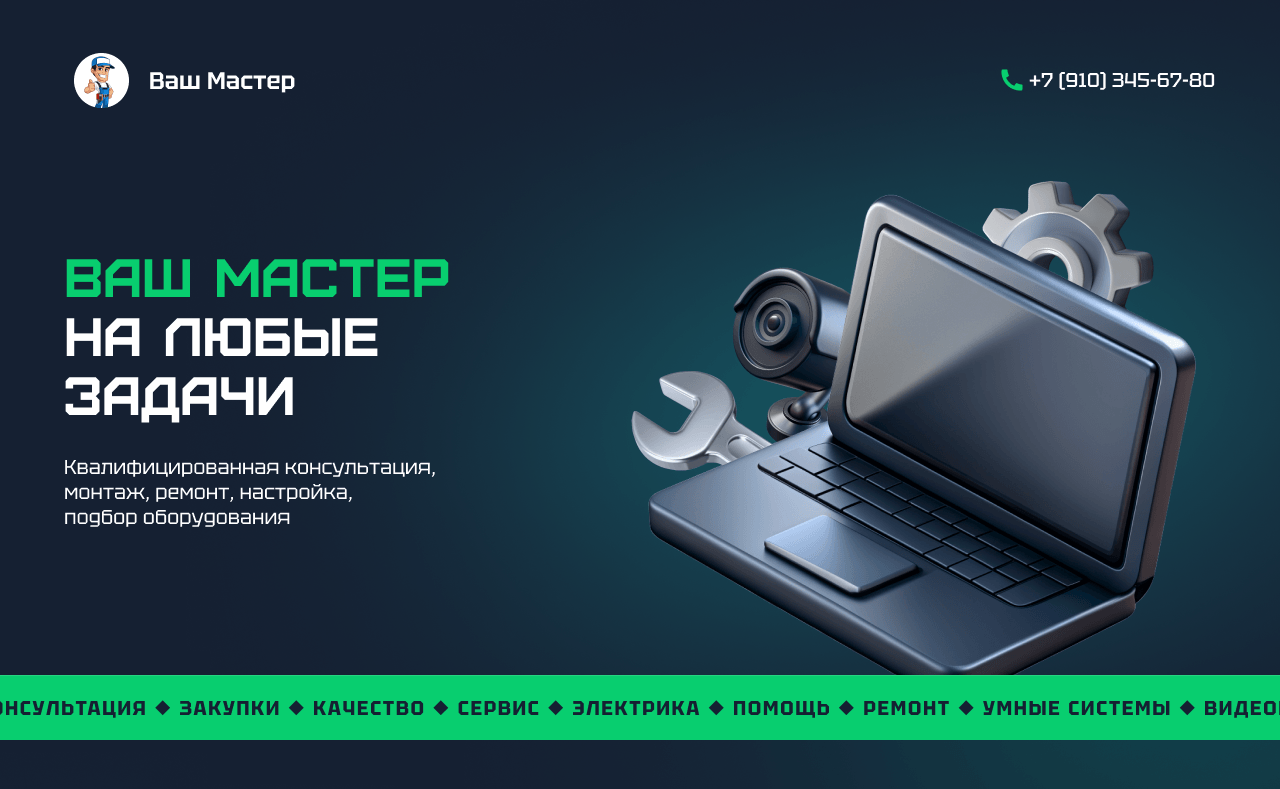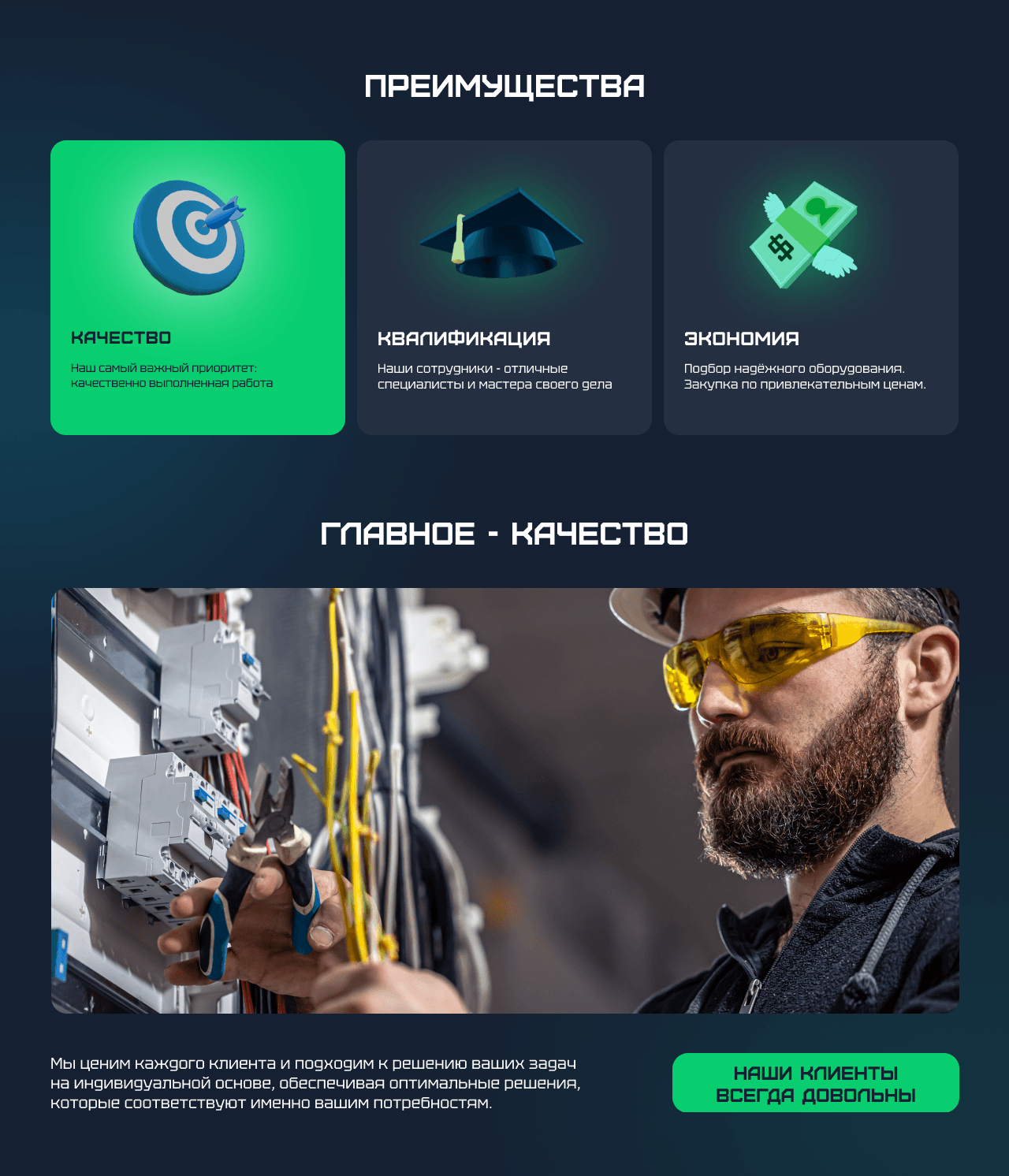 Был подобран стиль, создан графический макет сайта. Вёрстка производилась на WP Elementor. Также были добавлены анимации графических элементов.