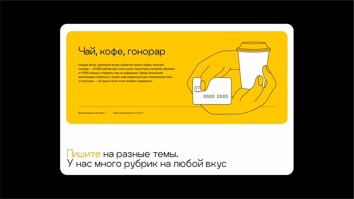 По сути платформа — это аналог vc.ru, но при этом каждая статья проходит модерацию, а её автор получает гонорар. Это позволяет собирать качественный экспертный контент, который пользователи высоко ценят.