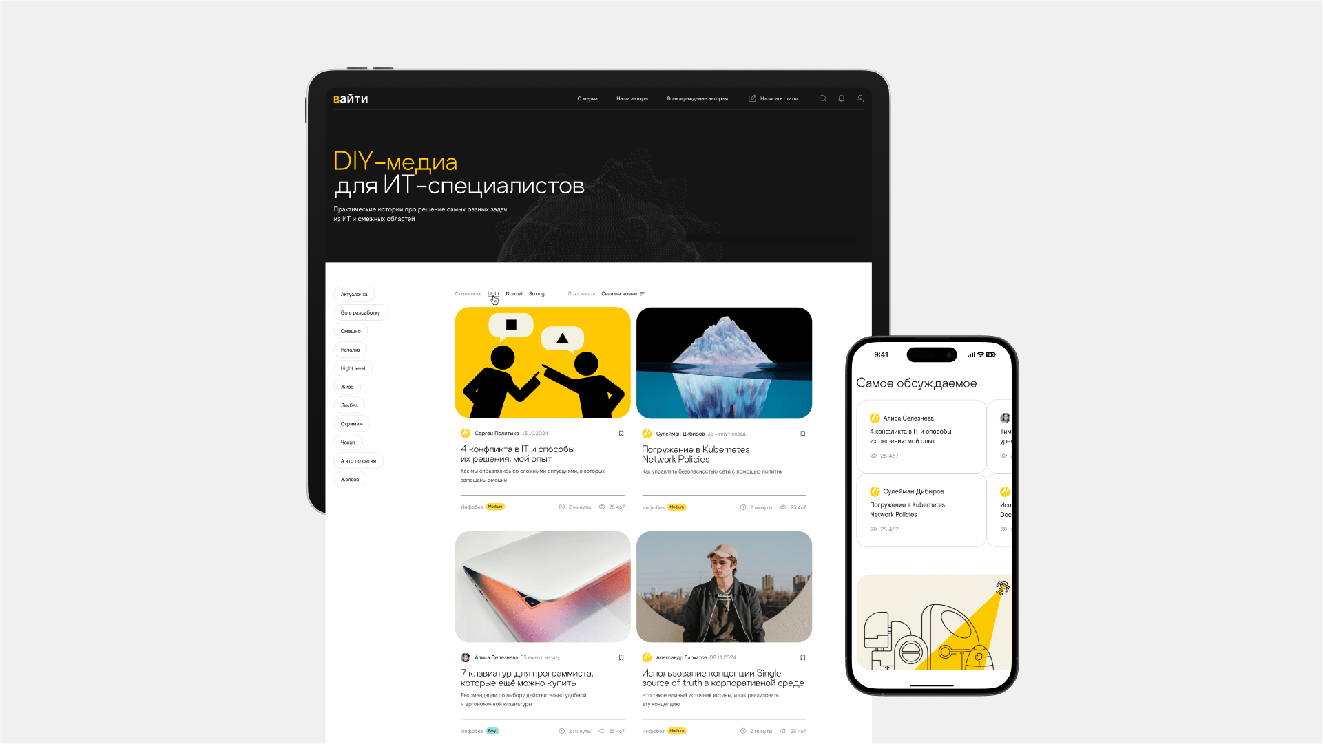 Решением стала разработка DIY-медиа «вАЙТИ» — площадки для авторского контента, пространства для IT-специалистов, которые хотят поделиться своей экспертизой и необычным опытом.