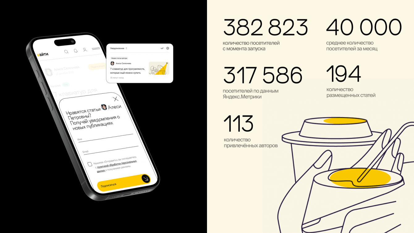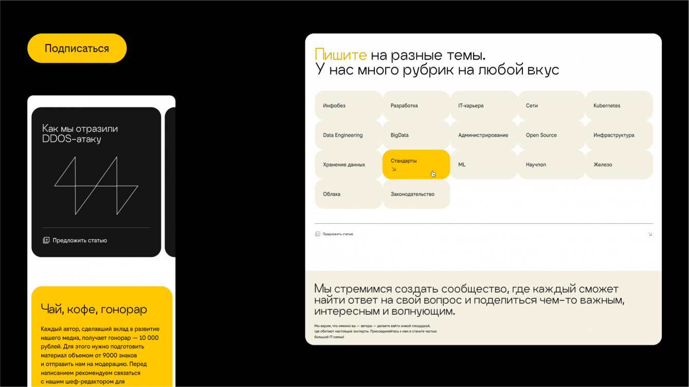 По сути платформа — это аналог vc.ru, но при этом каждая статья проходит модерацию, а её автор получает гонорар. Это позволяет собирать качественный экспертный контент, который пользователи высоко ценят.