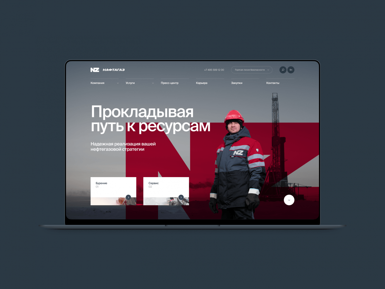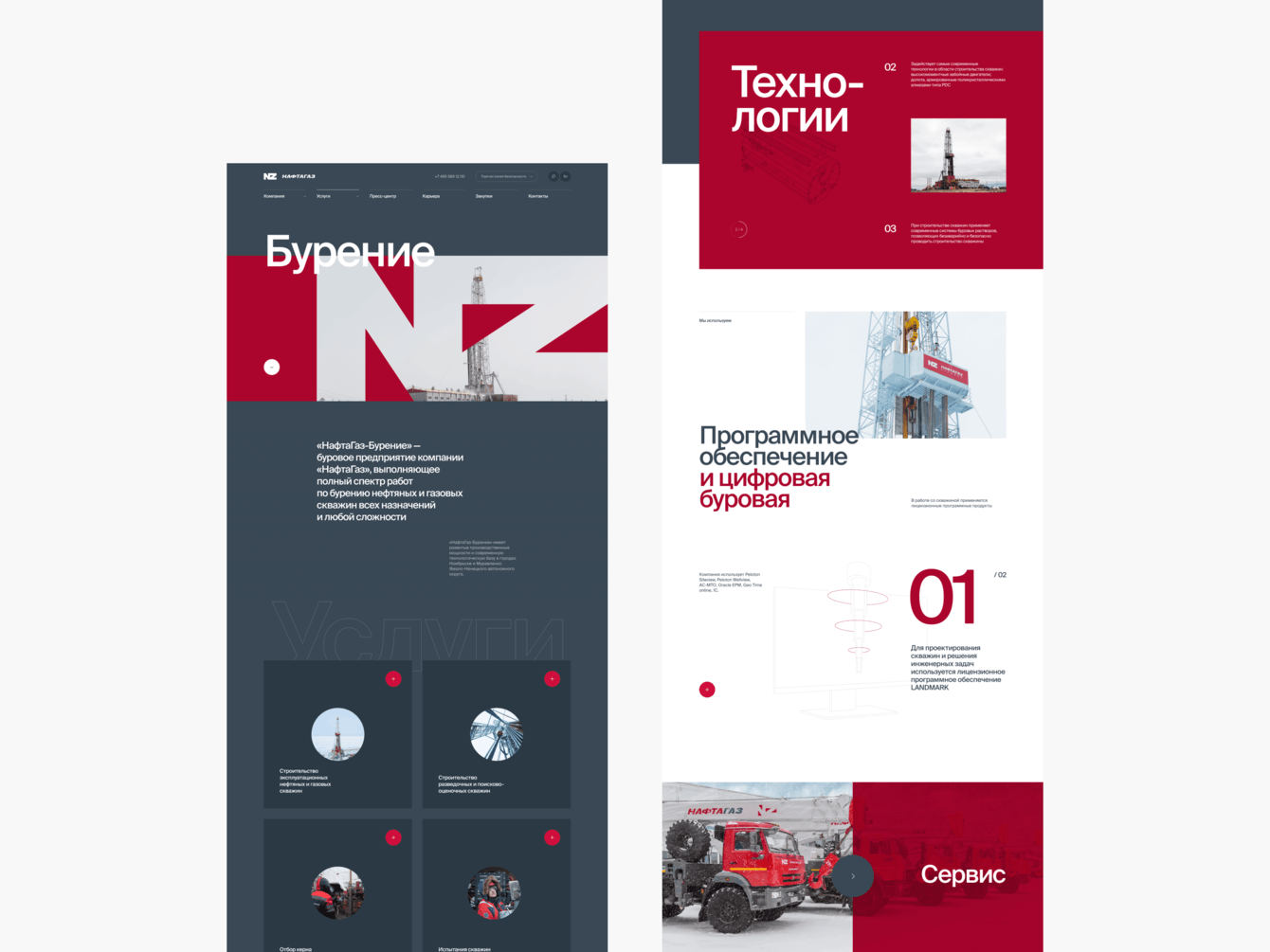 НафтаГаз — независимая нефтесервисная компания, занимающаяся бурением скважин всех типов и любой сложности. В отличие от крупных конкурентов в отрасли, компания динамична, современна и уделяет особое внимание экологической и социальной ответственности. Они обратились к нам с просьбой разработать корпоративный сайт, который ярко заявит о преимуществах и ценностях компании и выделит среди конкурентов.