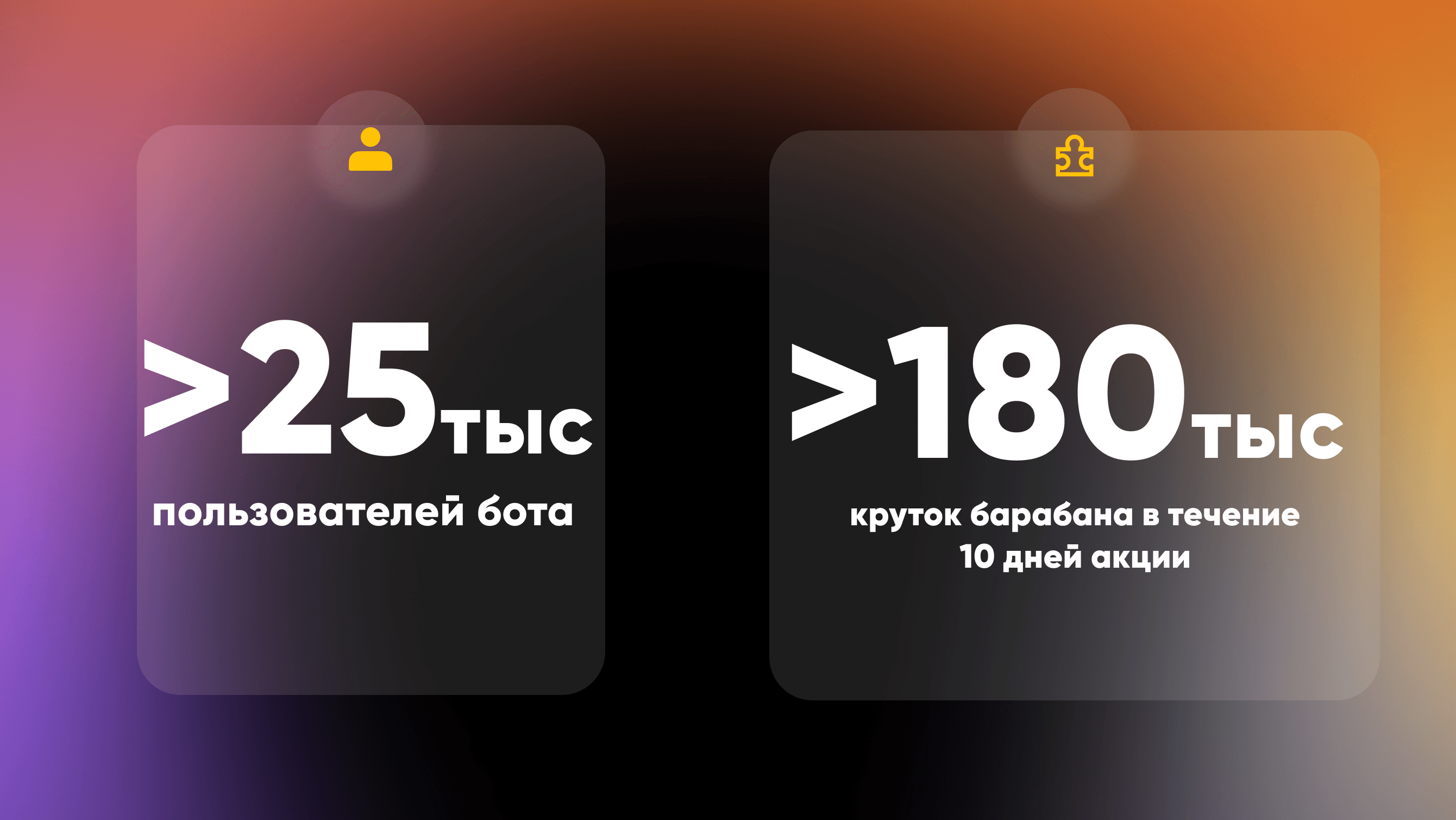 Совместно с креативными агентством ВИНОУ наша команда разработала игровое мини-приложение в Телеграм, которое позволяет пользователям выигрывать призы от бренда, делая “крутки”.