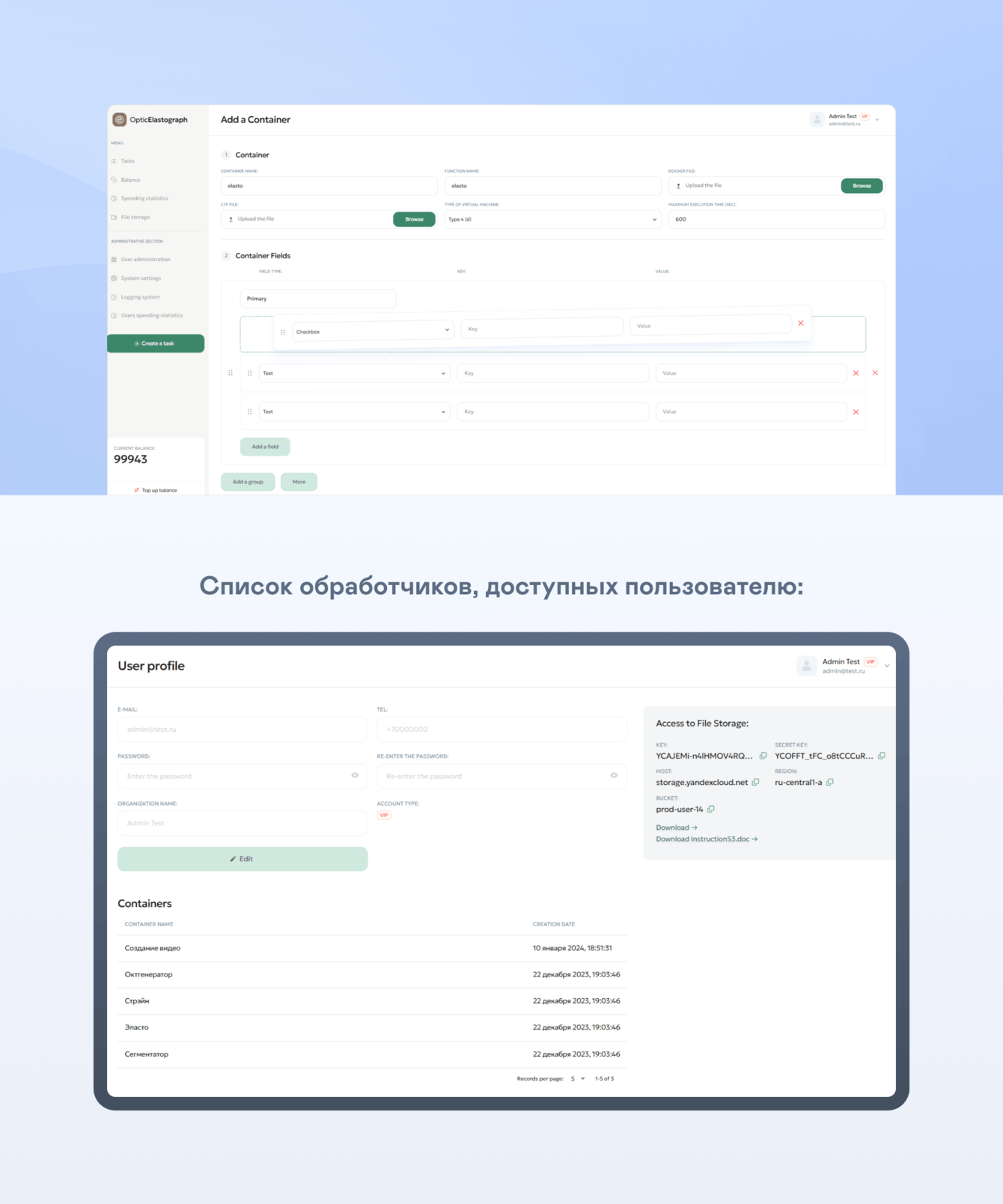 Администрируют сервис сотрудники ООО «Оптикэластограф». Они назначают пользователям уникальные контейнеры для обработки, настраивают в них поля, по которым система будет анализировать сканы, и регулируют мощность виртуальной машины, требуемой для обработки.