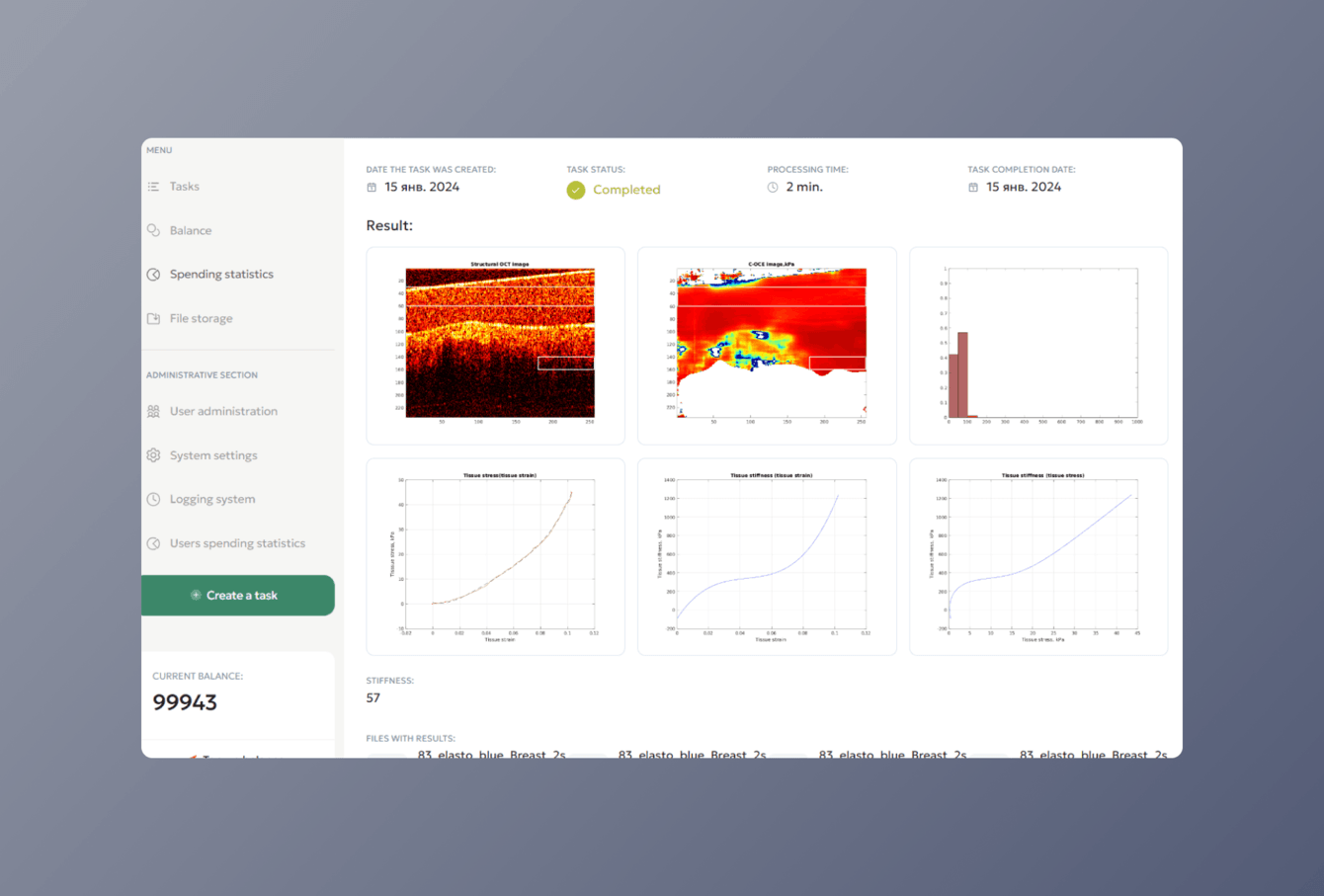 Платформа для обработки сканов OpticElastograph создана, протестирована и готовится к выходу на массовый рынок.