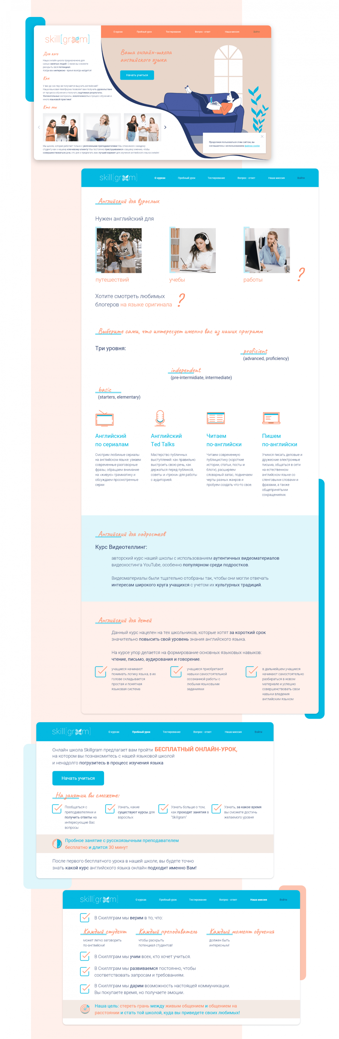 Процесс непосредственного производства проходил в тесном контакте со стейкхолдерами (основателями и совладельцами бизнеса) и рядовыми сотрудниками (учителями, методистами). Все пожелания и обратная связь учитывались при разработке и корректировке интерфейсов в целях повышения интуитивности использования как для предподавательского состава, так и для будущих студентов.