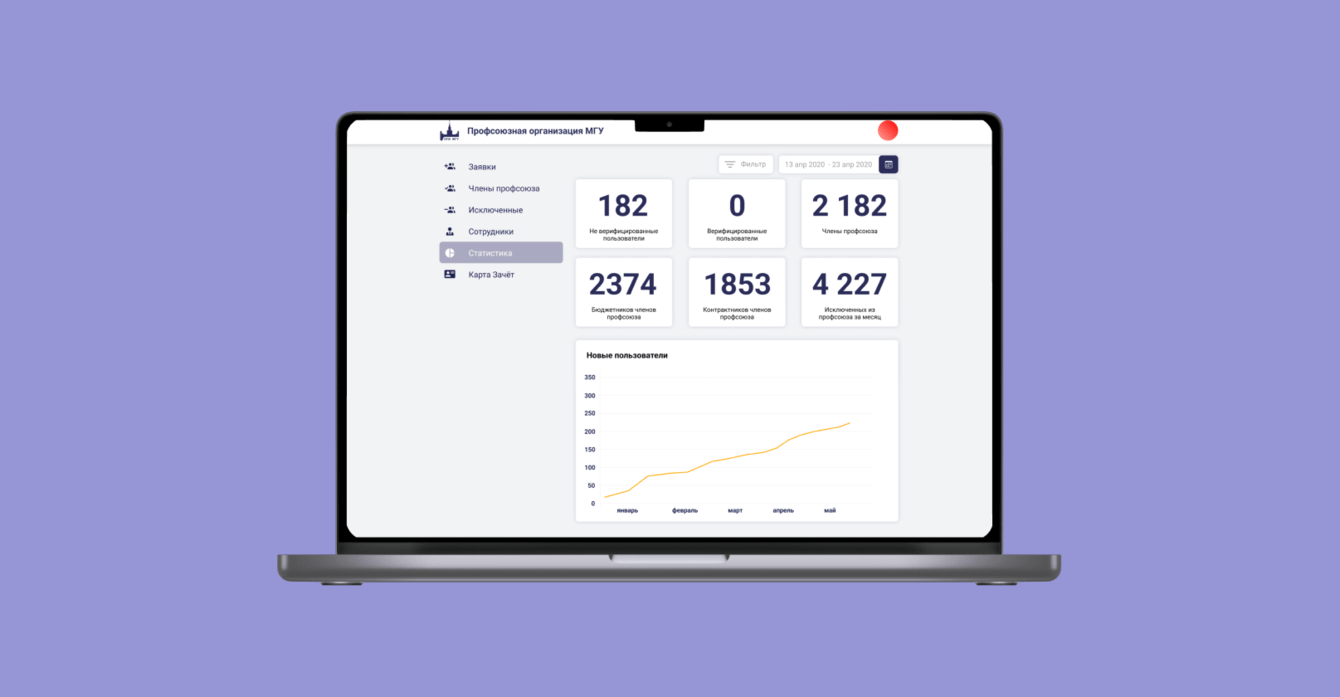 Также мы реализовали на веб-сайте систему аналитики, которая позволяет вести статистику членов профсоюза.
