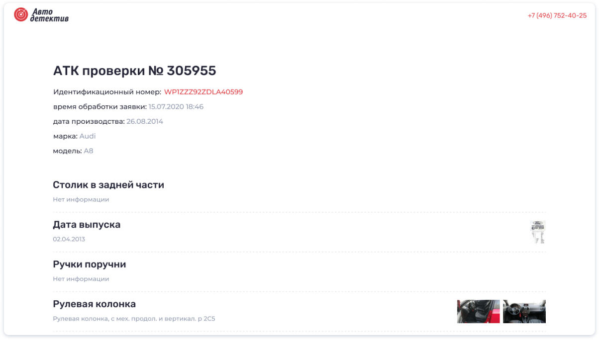 Autodetective — это сложный программный комплекс для автоматизации внешних и внутренних бизнес-процессов компании. С одной стороны, это веб-приложение для клиентов и партнеров с возможностью создания заявок и получением всей необходимой информации в процессе проведения проверки. С другой стороны, это информационная система для работы экспертов, в которой хранится вся необходимая информация. Для быстрой и стабильной работы двух систем общение осуществляется через разработанный нами API.