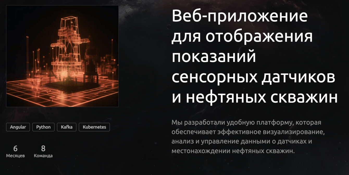 Наша команда разработала приложение, которое позволяет отображать показания скважинных датчиков на тепловой карте в режиме реального времени. Также был реализован функционал добавления новых скважин с возможностью преобразования данных с датчиков и удобным хранением всей истории изменений.