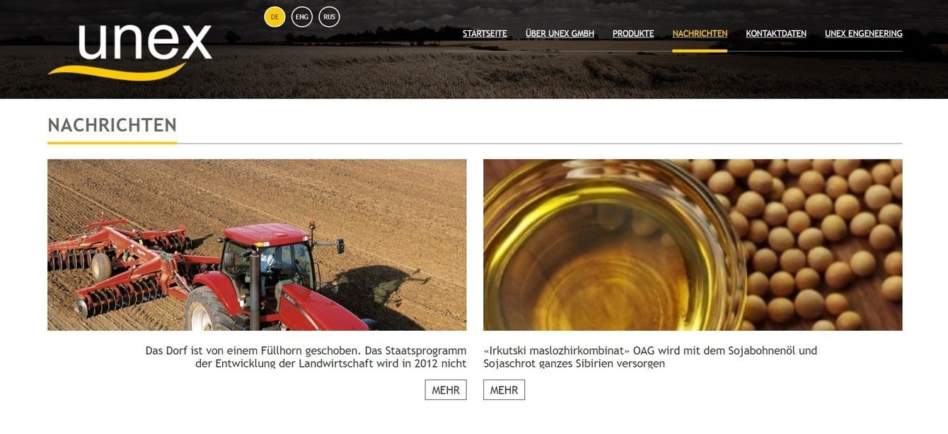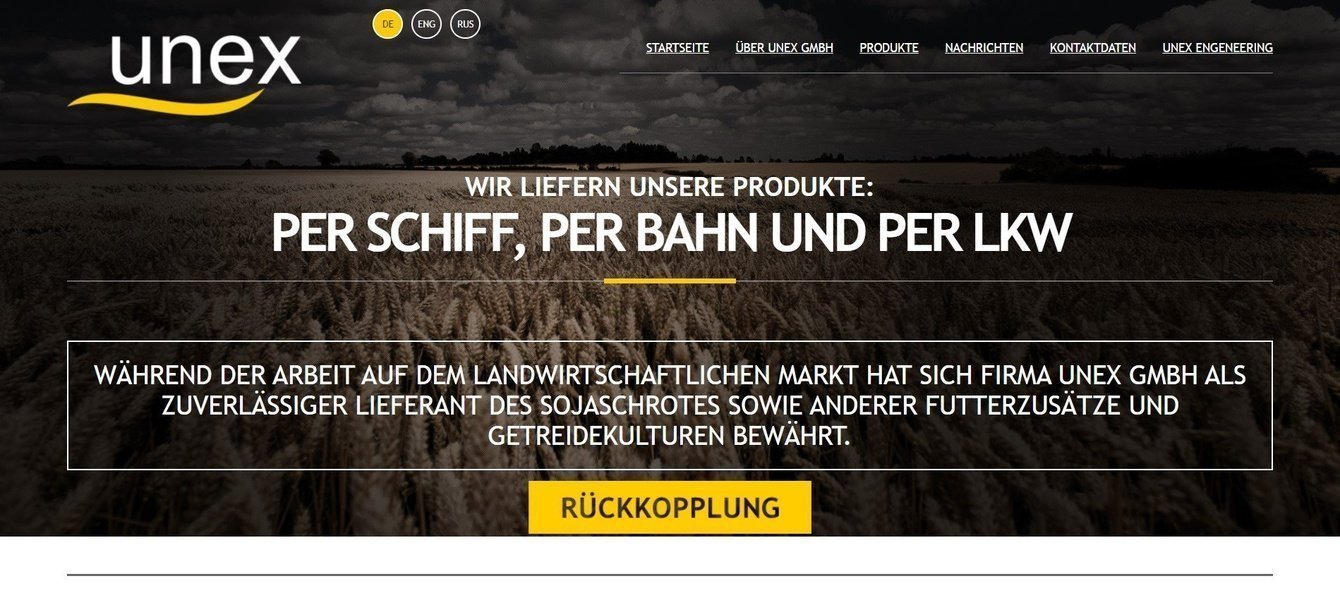 Разработка сайта для немецкого импортера сельскохозяйственных культур компания Unex-Holding.