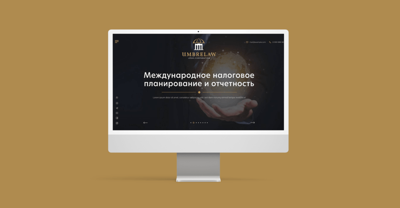 К нам обратился представитель международной юридической компании “Umbrelaw” со следующей задачей — создать профессиональный корпоративный сайт. Одним из ключевых критериев заказчика были премиальность дизайна и возможность управления контентом сайта, но главное — сайт должен быть разработан в кратчайшие сроки.