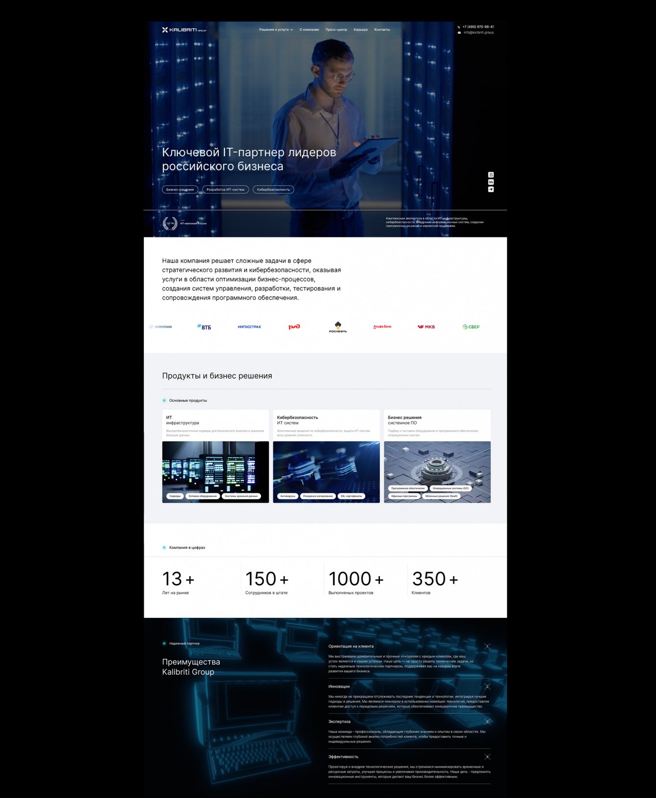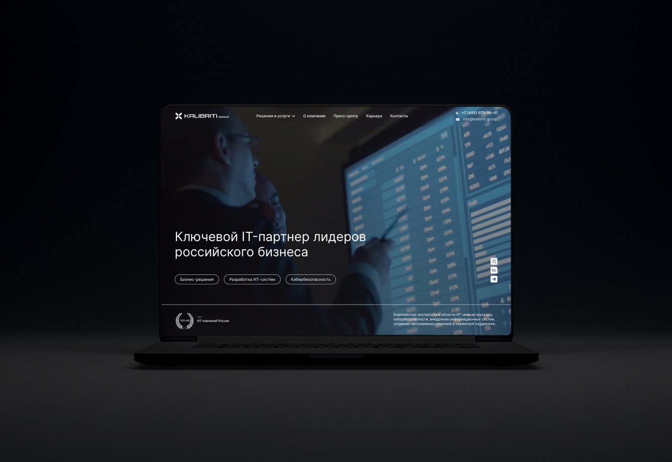 Разработка корпоративного веб-сайта и фирменного стиля для IT компании в России.