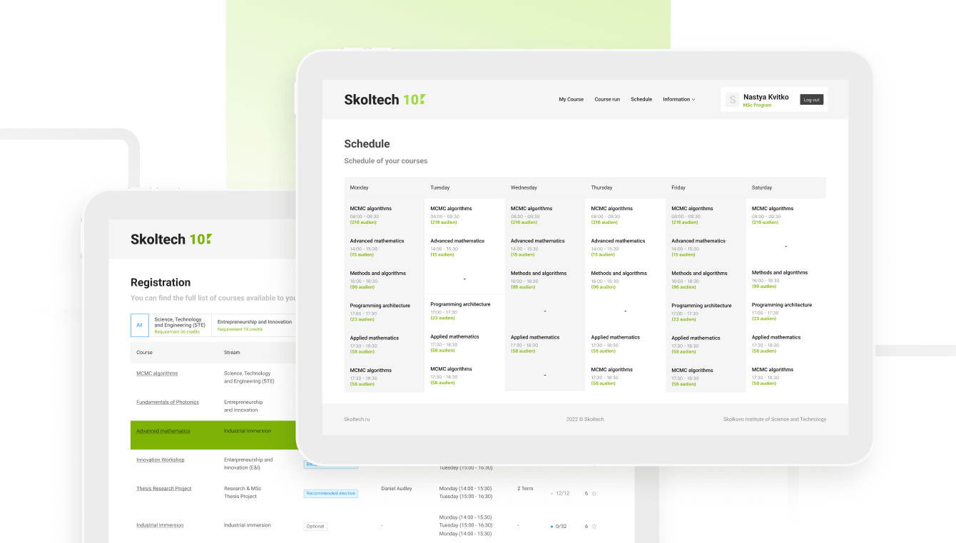 В готовой версии, которую протестировали сотрудники вуза, админ-панель собирается автоматически, а сама система удобна для студентов: в личном кабинете видны все учебные курсы, их описание и расписание, информация о самом студенте, научных руководителях, семестрах, баллах. Одна из ключевых функций – возможность зарегистрироваться на доступные курсы.